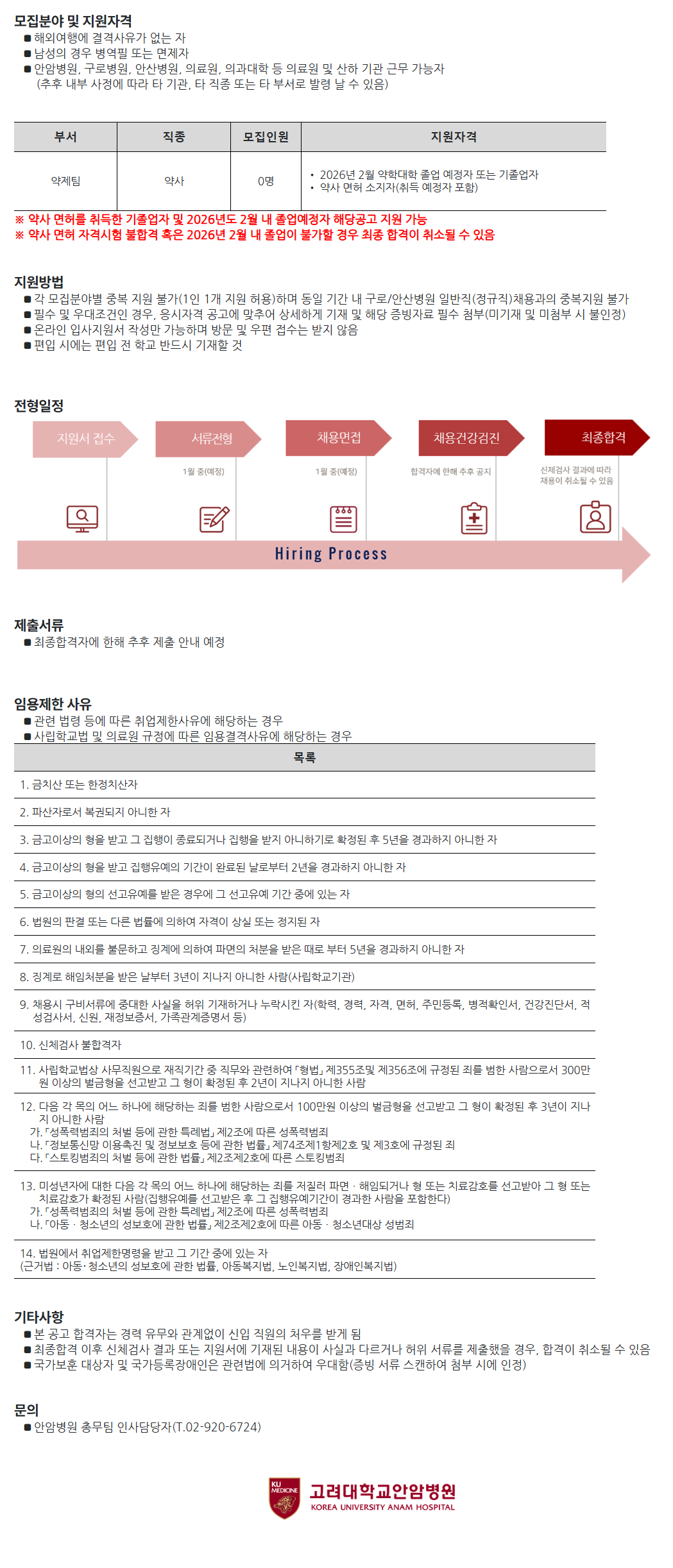 °í·Á´ëÇб³ÀÇ·á¿ø(¾È¾Ïº´¿ø) ½Å±Ô ±³Á÷¿ø(Á¤±ÔÁ÷) ¸ðÁý(¾àÁ¦ÆÀ ¾à»ç)