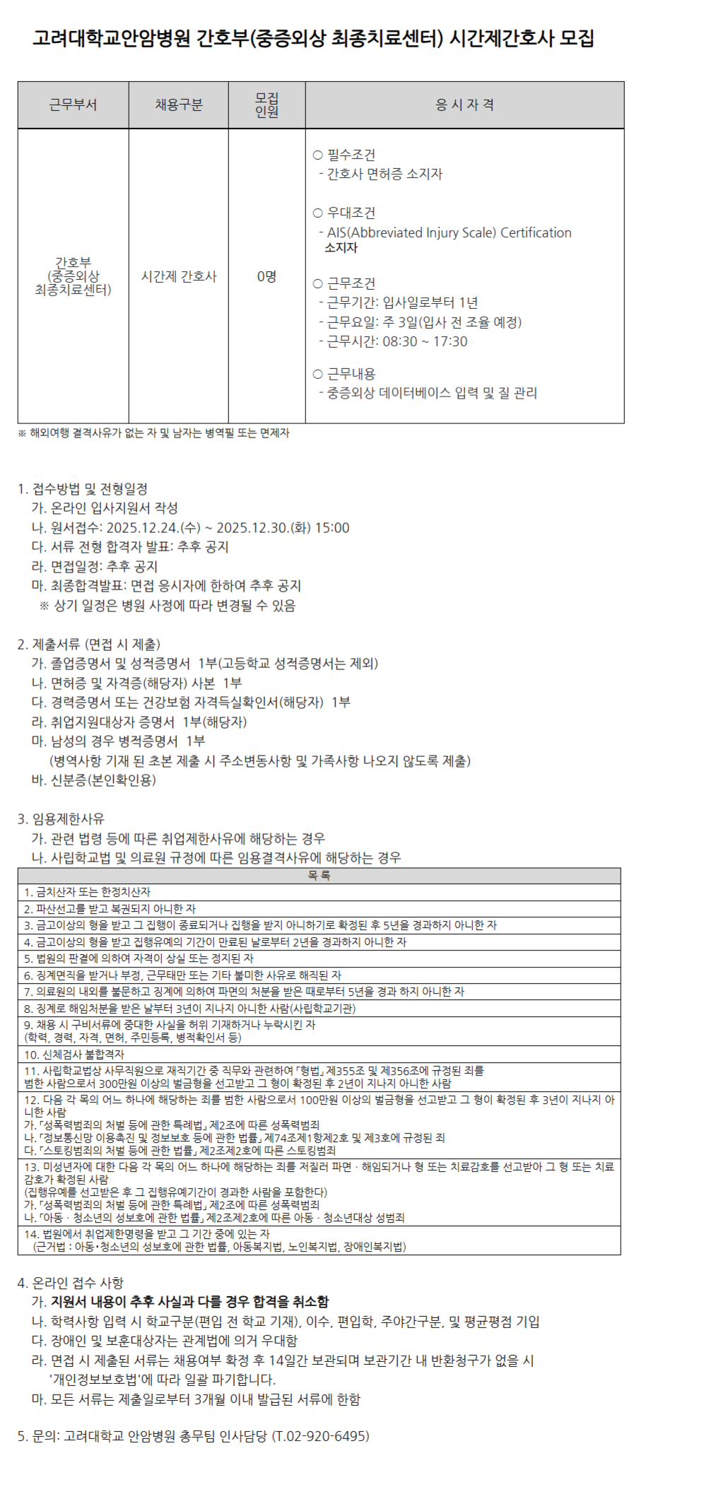 [¾È¾Ïº´¿ø 25-240]°£È£ºÎ(ÁßÁõ¿Ü»ó ÃÖÁ¾Ä¡·á¼¾ÅÍ) ½Ã°£Á¦ °£È£»ç ¸ðÁý