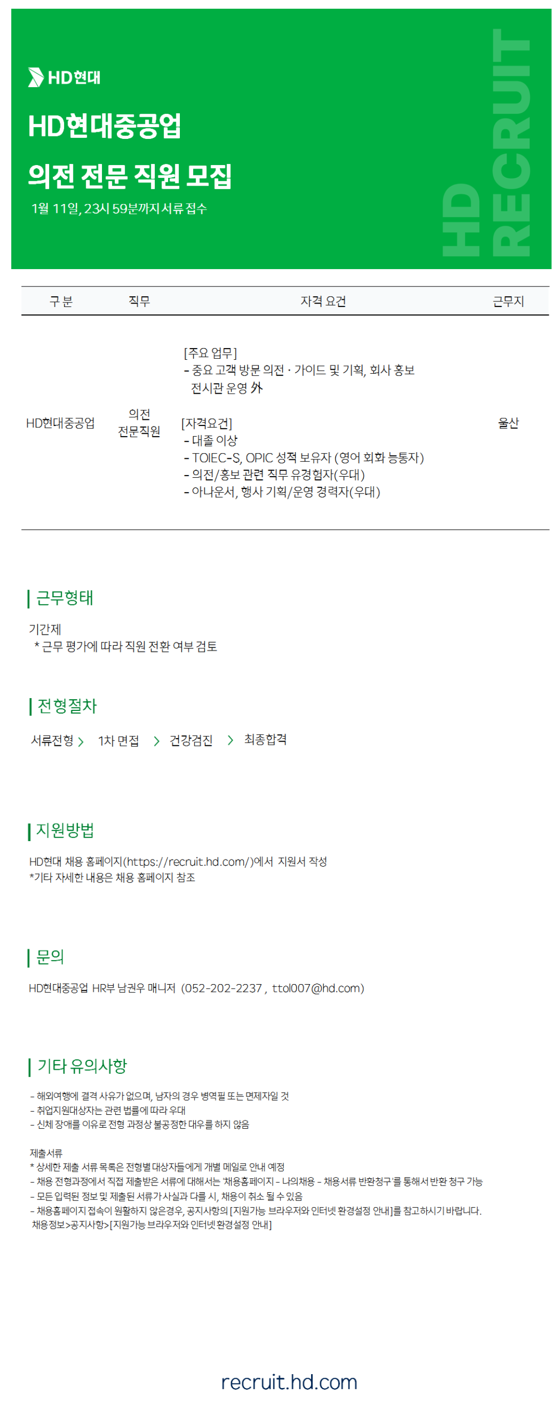 [HDÇö´ëÁß°ø¾÷] ÀÇÀü Àü¹® Á÷¿ø ä¿ë