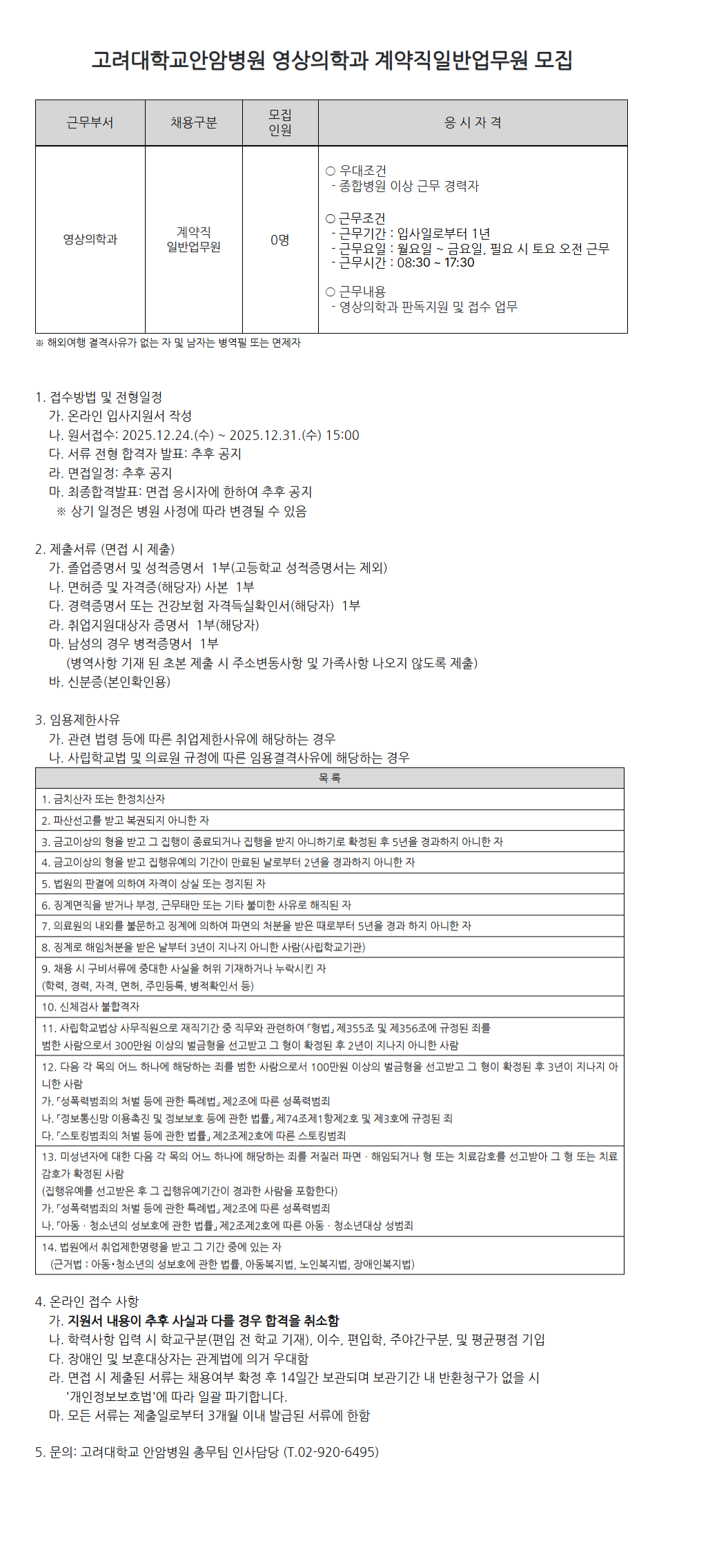 [¾È¾Ïº´¿ø 25-242]¿µ»óÀÇÇаú °è¾àÁ÷ ÀϹݾ÷¹«¿ø ¸ðÁý