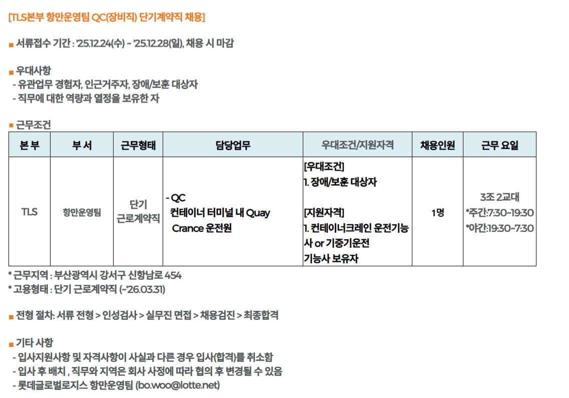 Ç׸¸¿î¿µÆÀ QC(ÀåºñÁ÷) ´Ü±â°è¾àÁ÷ ä¿ë(~12/28)