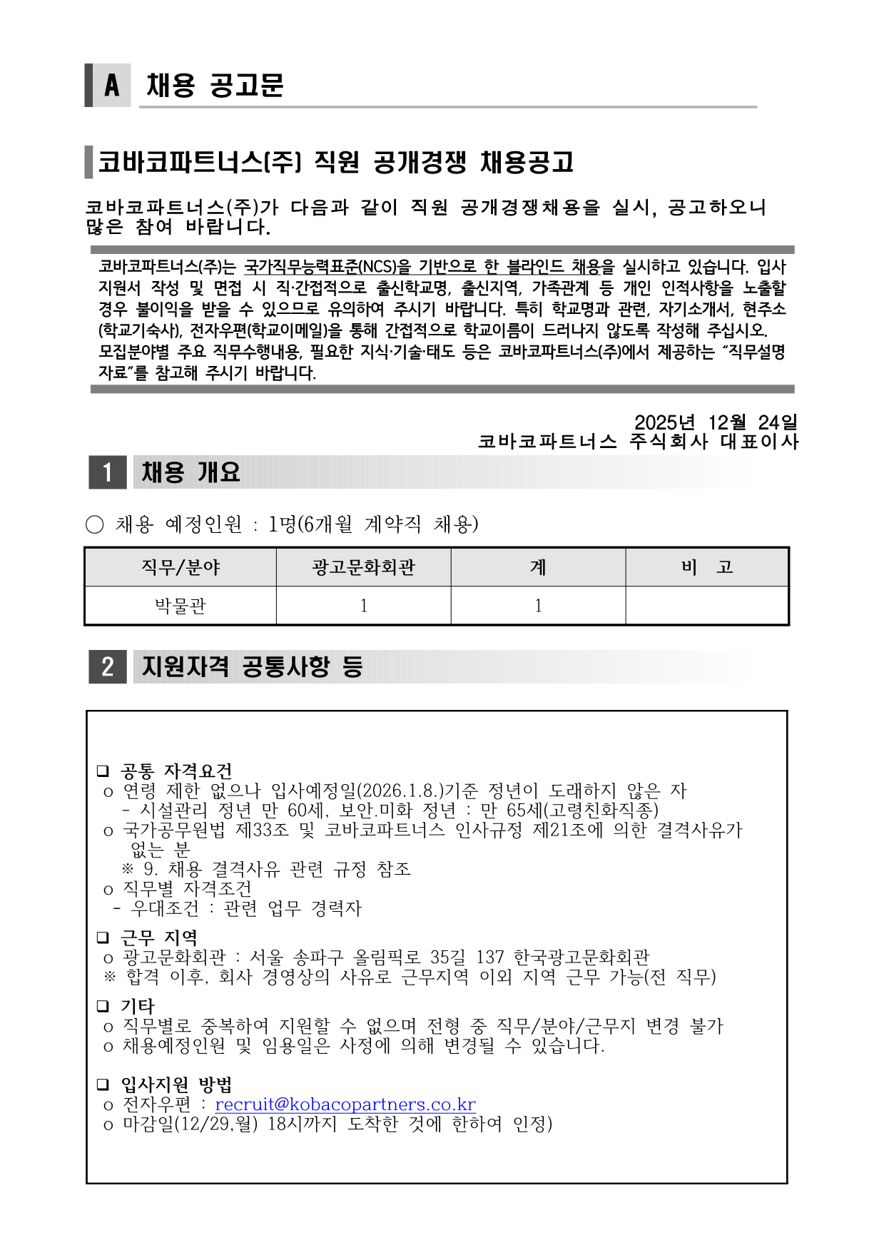 o ä¿ë¿¹Á¤Àοø ¹× ÀÓ¿ëÀÏÀº »çÁ¤¿¡ ÀÇÇØ º¯°æµÉ ¼ö ÀÖ½À´Ï´Ù. ❑ ÀÔ»çÁö¿ø ¹æ¹ý o ÀüÀÚ¿ìÆí : recruit@kobacopartners.co.kr******@*******.***