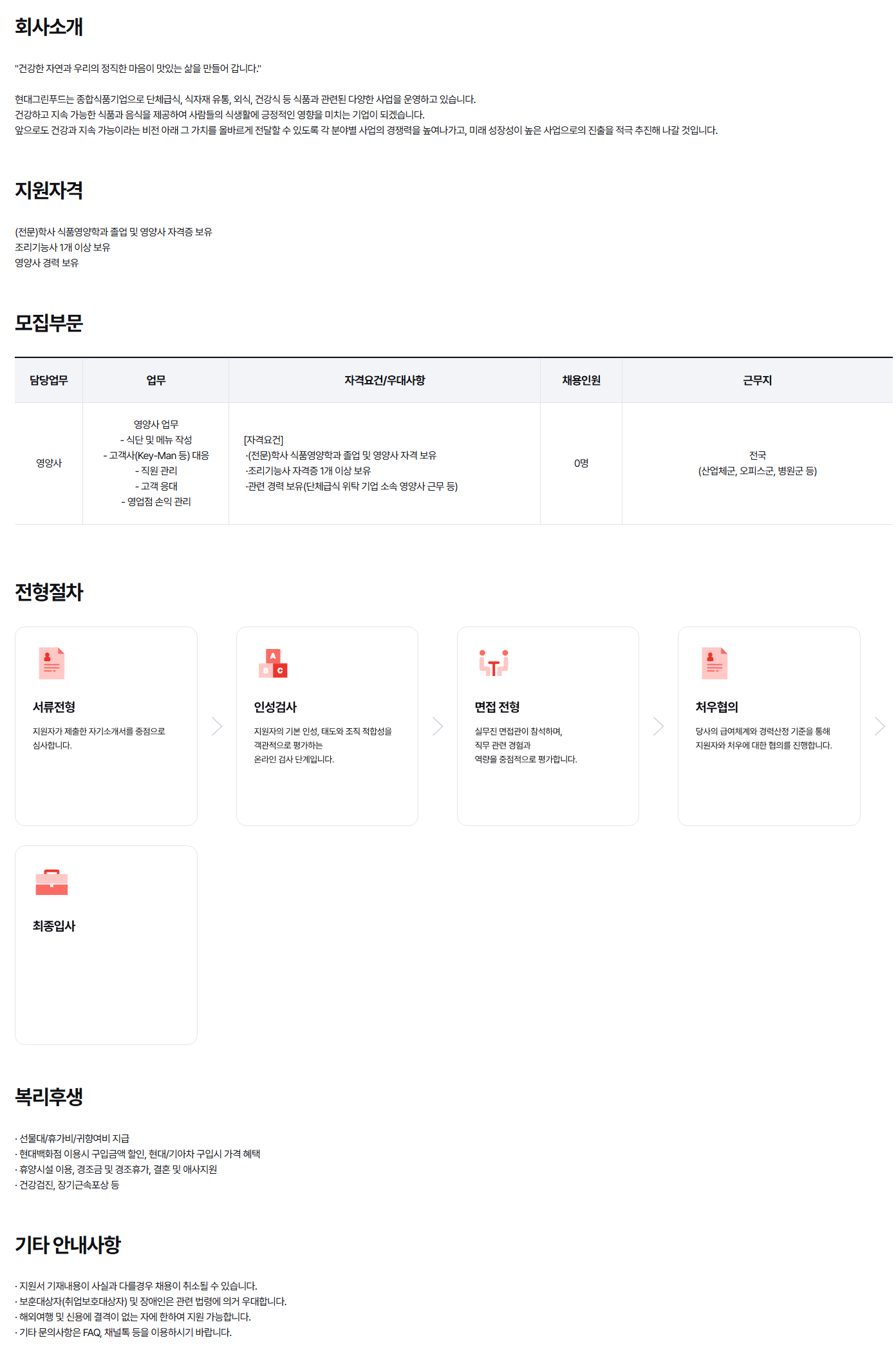 Çö´ë±×¸°Çªµå´Â Á¾ÇÕ½Äǰ±â¾÷À¸·Î ´Üü±Þ½Ä, ½ÄÀÚÀç À¯Åë, ¿Ü½Ä, °Ç°½Ä µî ½Äǰ°ú °ü·ÃµÈ ´Ù¾çÇÑ »ç¾÷À» ¿î¿µÇϰí ÀÖ½À´Ï´Ù.