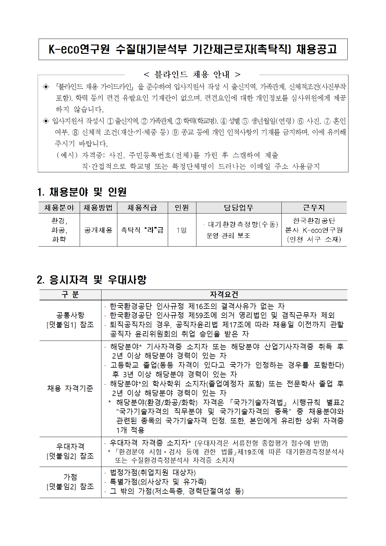 Çѱ¹È¯°æ°ø´Ü(º»»ç) K-eco¿¬±¸¿ø ¼öÁú´ë±âºÐ¼®ºÎ ±â°£Á¦±Ù·ÎÀÚ(ÃËŹ¡®¶ó¡¯±Þ)ä¿ë °ø°í