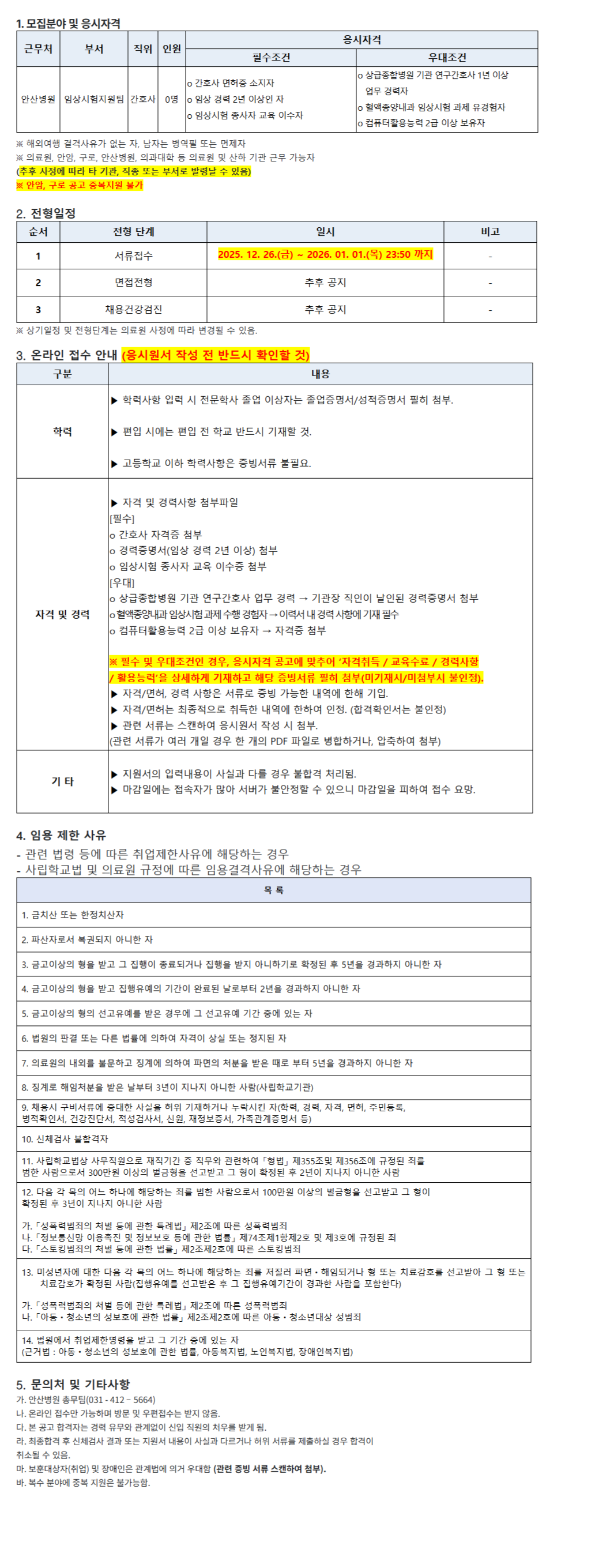 [¾È»êº´¿ø Á¤±ÔÁ÷ 25-33] ÀÓ»ó½ÃÇèÁö¿øÆÀ ½Å±Ô°£È£»ç ¸ðÁý