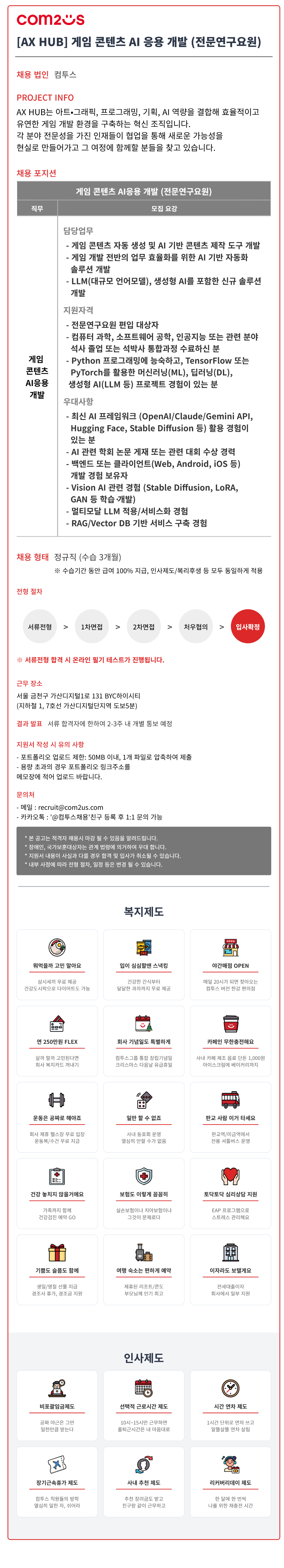[AX HUB] °ÔÀÓ ÄÜÅÙÃ÷ AI ÀÀ¿ë °³¹ß (Àü¹®¿¬±¸¿ä¿ø)