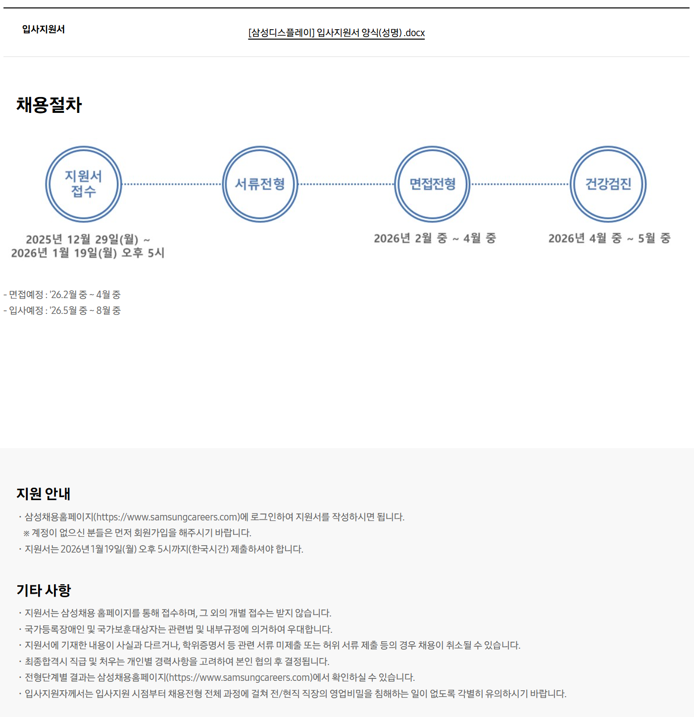 ¡Ø ÀúÀå½Ã ÆÄÀϸíÀº "[»ï¼ºµð½ºÇ÷¹ÀÌ] ÀÔ»çÁö¿ø¼ ¾ç½Ä(¼º¸í)"À¸·Î ÀÛ¼º¹Ù¶ø´Ï´Ù.