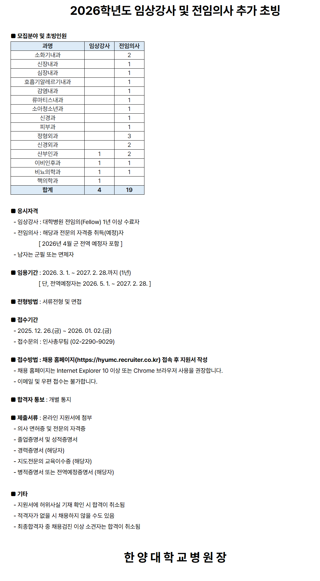 2026Çг⵵ ÀÓ»ó°»ç ¹× ÀüÀÓÀÇ»ç Ãß°¡ Ãʺù