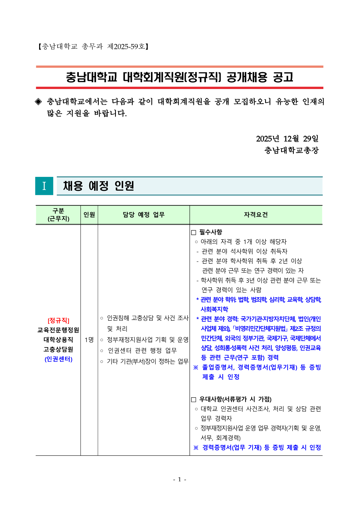 Ãæ³²´ëÇб³ ´ëÇÐȸ°èÁ÷¿ø(Á¤±ÔÁ÷) ä¿ë ¾È³»(Á¦2025-59È£)