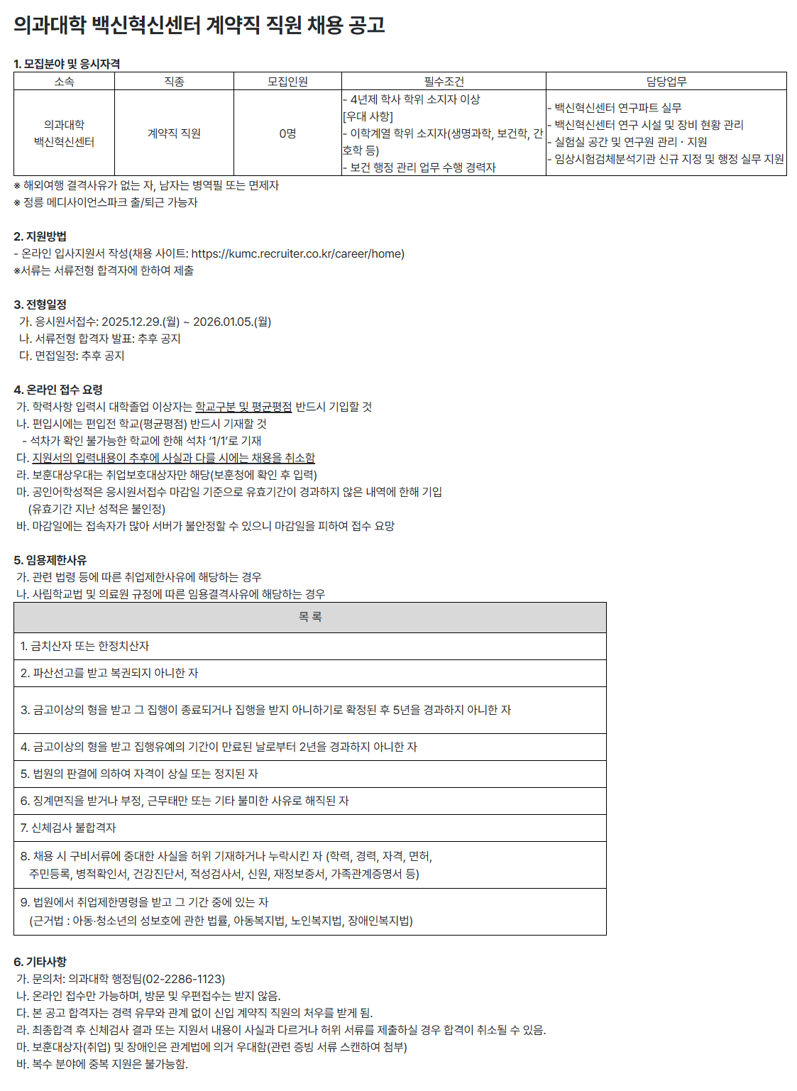 Àǰú´ëÇÐ ¹é½ÅÇõ½Å¼¾ÅÍ °è¾àÁ÷ Á÷¿ø ä¿ë °ø°í