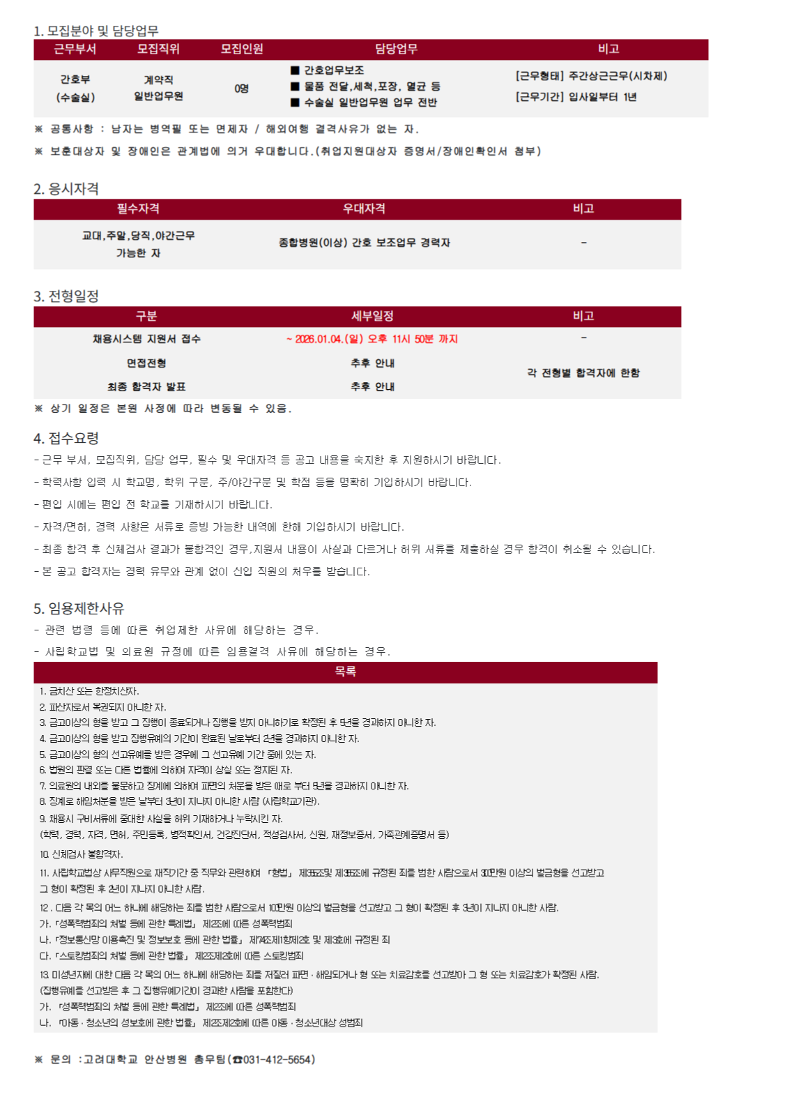 [¾È»êº´¿ø25-205] °£È£ºÎ(¼ö¼ú½Ç) °è¾àÁ÷ÀϹݾ÷¹«¿ø ¸ðÁý