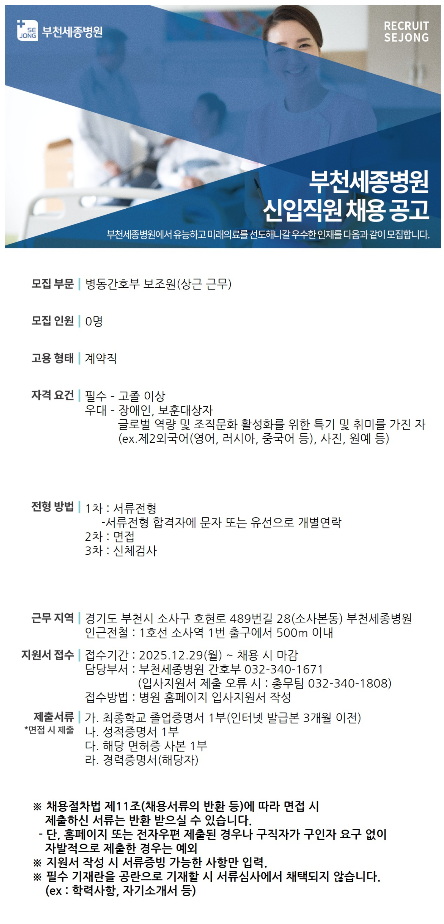 [ºÎõ¼¼Á¾º´¿ø] º´µ¿°£È£ºÎ º¸Á¶¿ø(»ó±Ù±Ù¹«) ä¿ë°ø°í(°è¾àÁ÷)