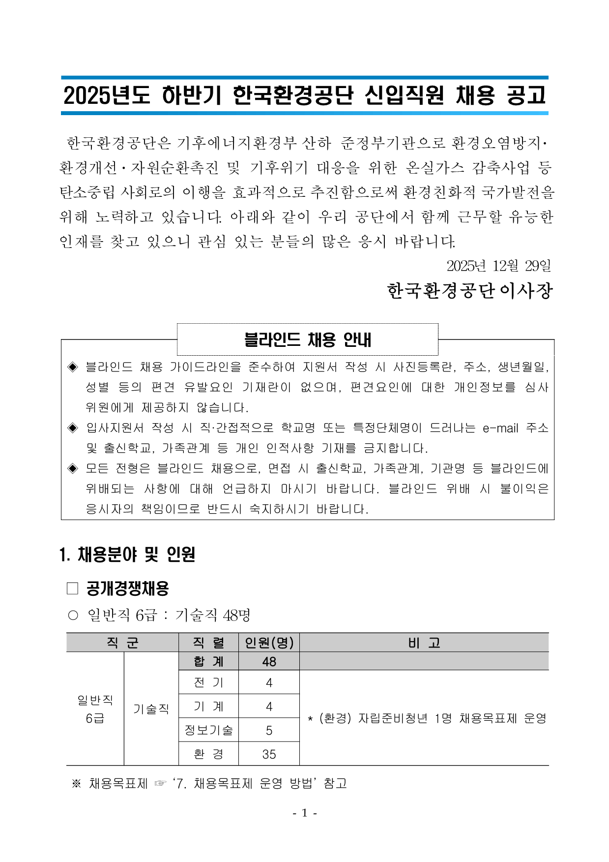 2025³âµµ ÇϹݱâ Çѱ¹È¯°æ°ø´Ü ½ÅÀÔÁ÷¿ø ä¿ë °ø°í