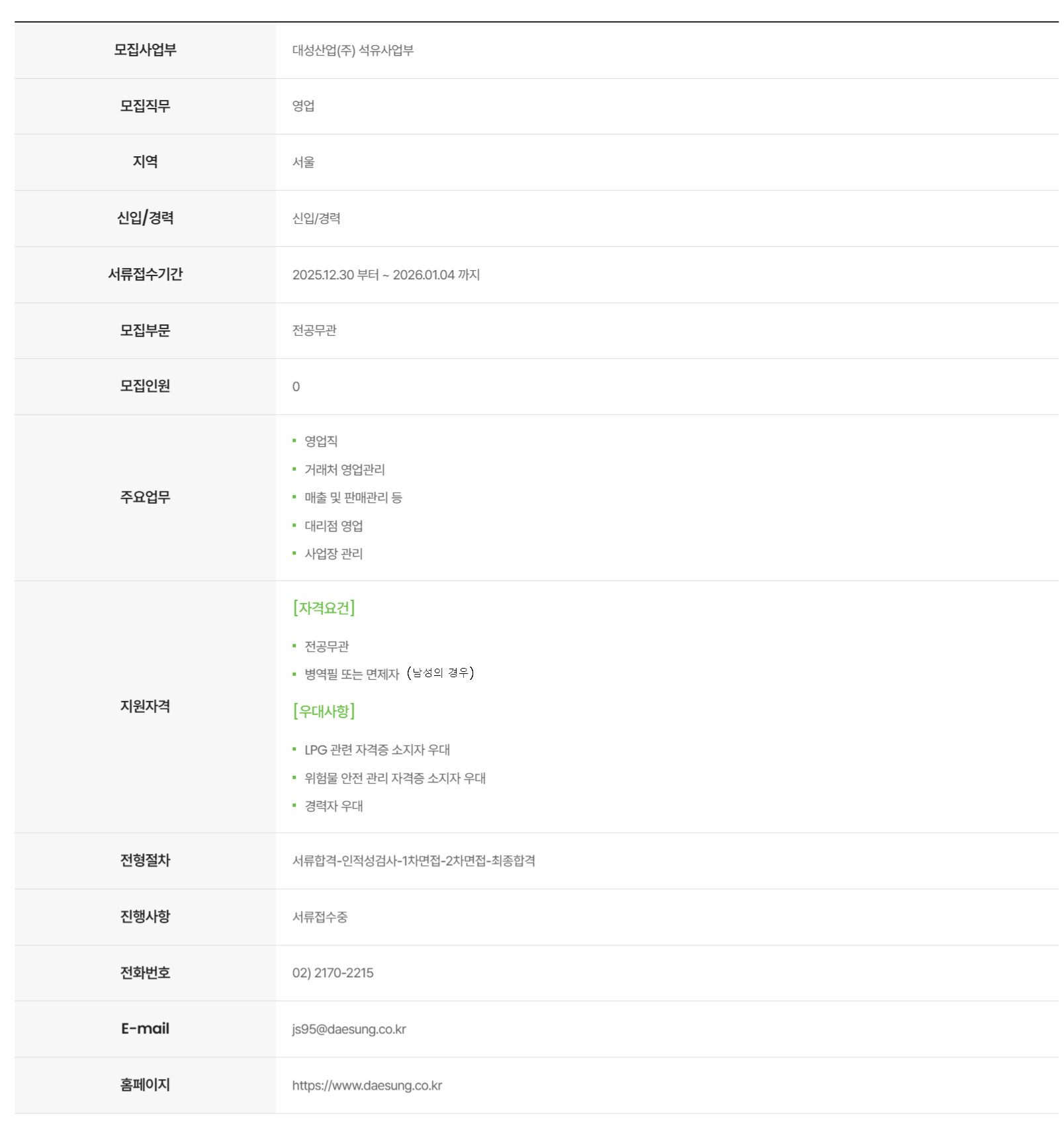 [´ë¼º»ê¾÷ ¼¿ï¼®À¯»ç¾÷ºÎ] ¿µ¾÷°ü¸® ½ÅÀÔ»ç¿ø ¸ðÁý