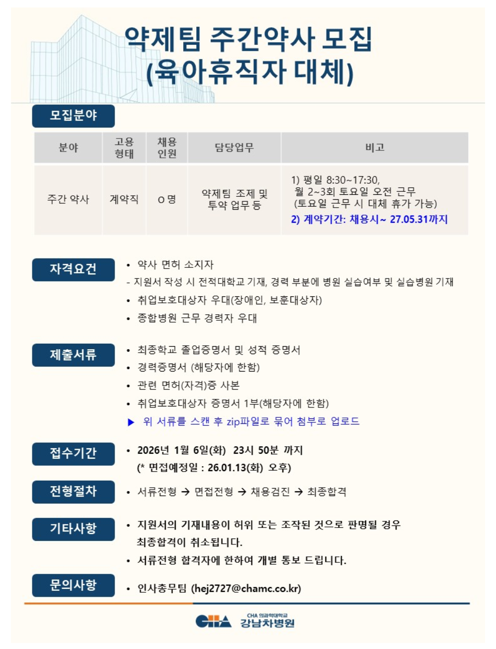 [°³²Â÷º´¿ø] °³²Â÷º´¿ø ÁÖ°£¾à»ç ¸ðÁý(À°¾ÆÈÞÁ÷ÀÚ ´ëü)