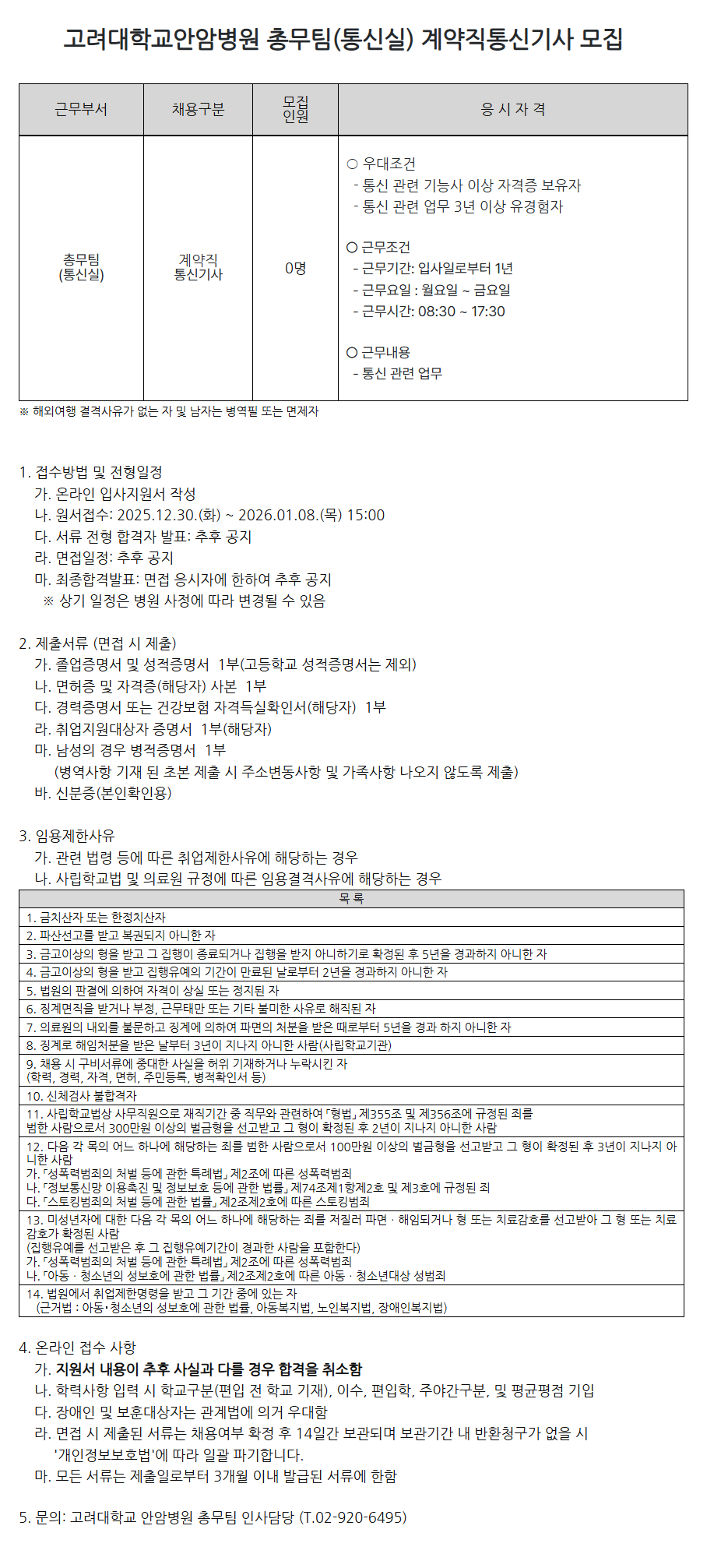 °í·Á´ëÇб³¾È¾Ïº´¿ø Ãѹ«ÆÀ(Åë½Å½Ç) °è¾àÁ÷Åë½Å±â»ç ¸ðÁý