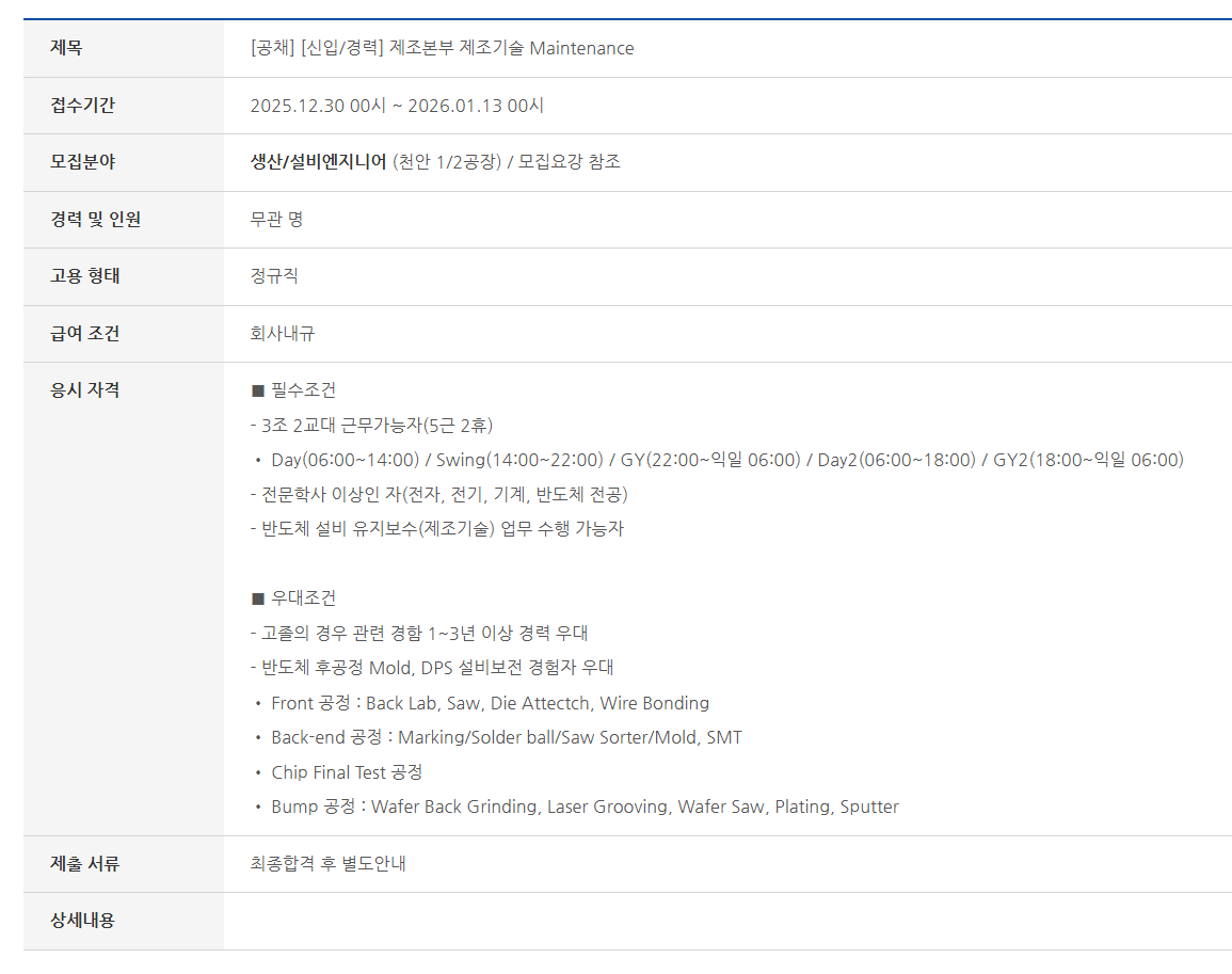 Á¦¸ñ [°øÃ¤] [½ÅÀÔ/°æ·Â] Á¦Á¶º»ºÎ Á¦Á¶±â¼ú Maintenance