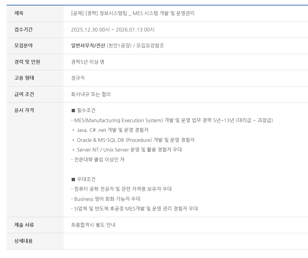 Á¦¸ñ [°øÃ¤] [°æ·Â] Á¤º¸½Ã½ºÅÛÆÀ _ MES ½Ã½ºÅÛ °³¹ß ¹× ¿î¿µ°ü¸®