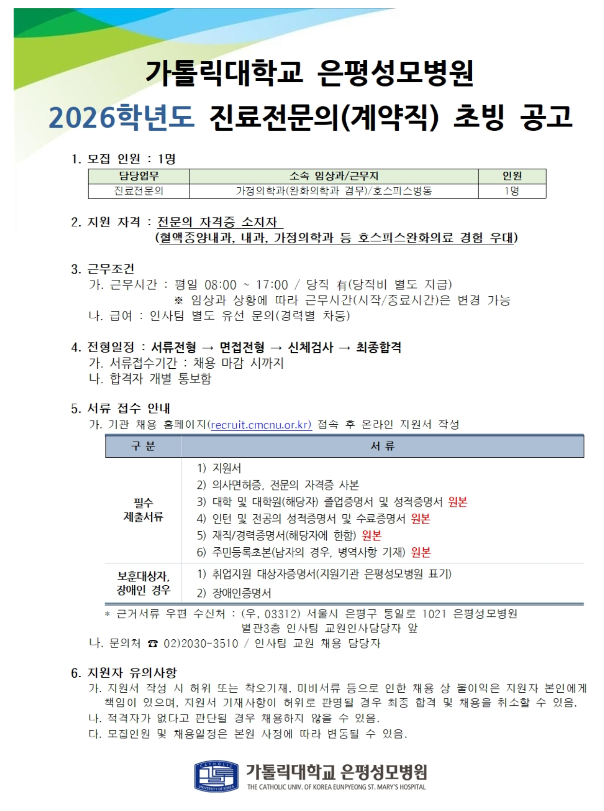 [ÀºÆò¼º¸ð] 2026Çг⵵ °¡Á¤ÀÇÇаú(¿ÏÈÀÇÇаú °â¹«) Áø·áÀü¹®ÀÇ Ãʺù °ø°í