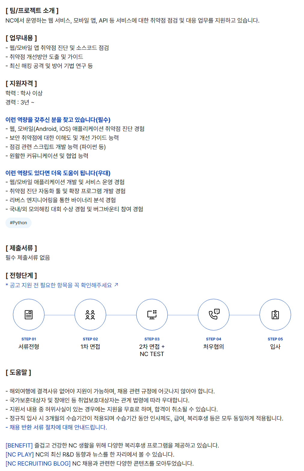 NC¿¡¼ ¿î¿µÇÏ´Â À¥ ¼ºñ½º, ¸ð¹ÙÀÏ ¾Û, API µî ¼ºñ½º¿¡ ´ëÇÑ Ãë¾àÁ¡ Á¡°Ë ¹× ´ëÀÀ ¾÷¹«¸¦ Áö¿øÇϰí ÀÖ½À´Ï´Ù.