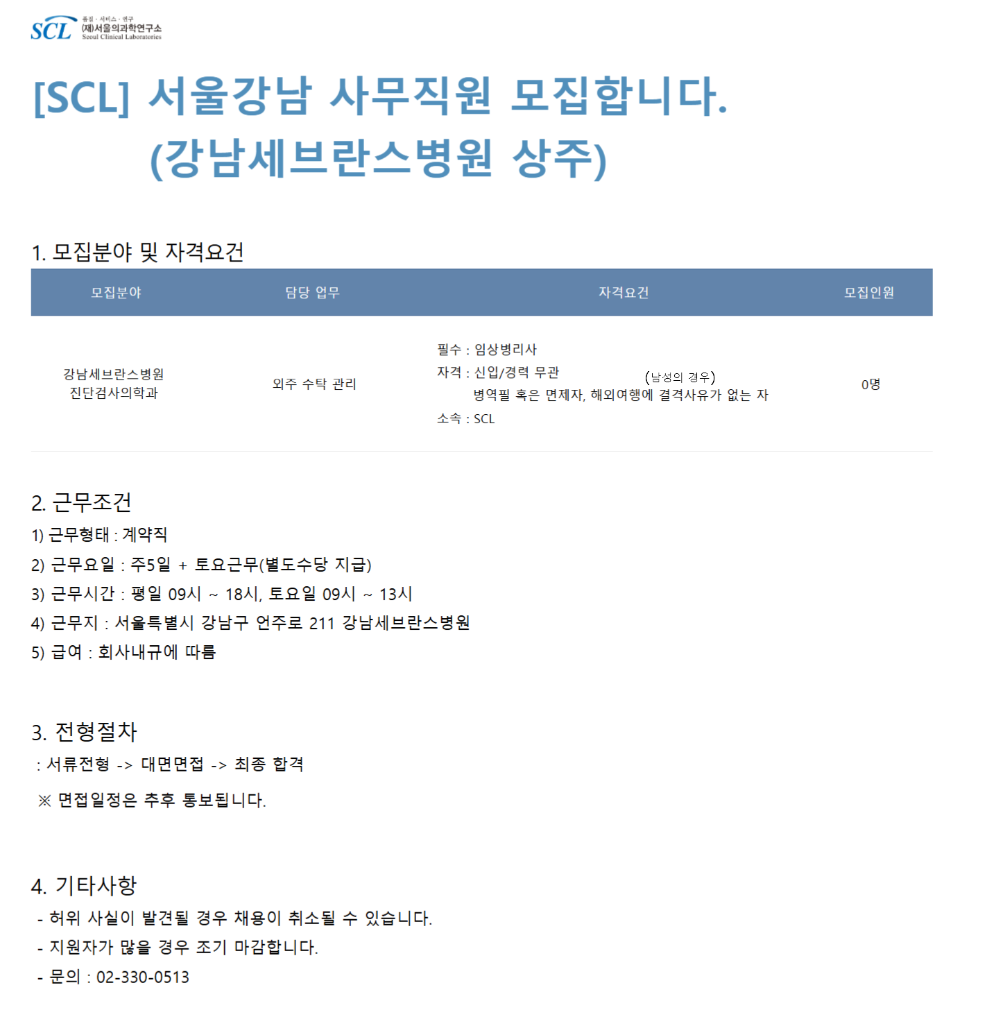 [SCL] °³²¼¼ºê¶õ½ºº´¿ø Áø´Ü°Ë»çÀÇÇаú »óÁÖÁ÷¿ø ¸ðÁýÇÕ´Ï´Ù.