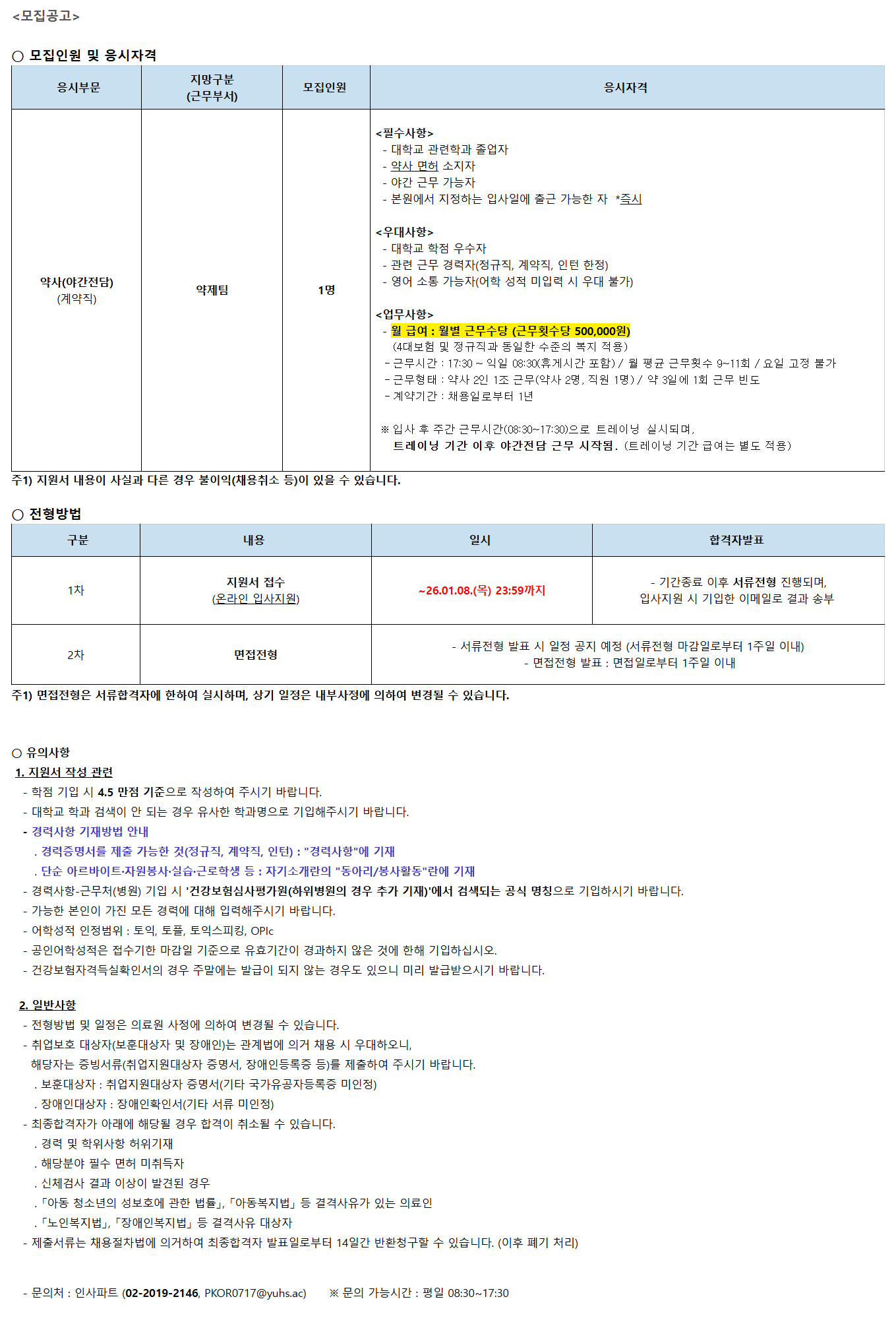 - ±Ù¹«ÇüÅ : ¾à»ç 2ÀÎ 1Á¶ ±Ù¹«(¾à»ç 2¸í, Á÷¿ø 1¸í) / ¾à 3ÀÏ¿¡ 1ȸ ±Ù¹« ºóµµ