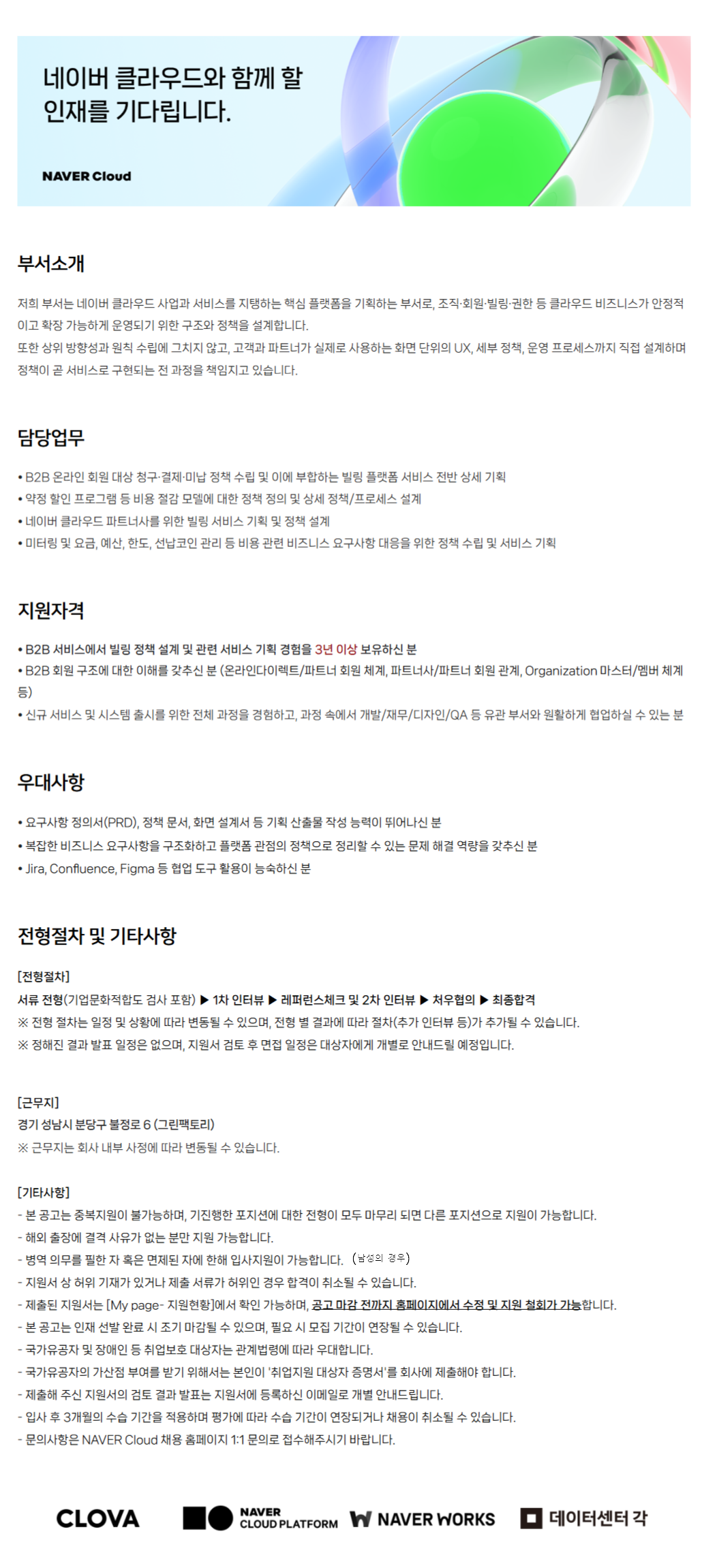 ÀúÈñ ºÎ¼´Â ³×À̹ö Ŭ¶ó¿ìµå »ç¾÷°ú ¼ºñ½º¸¦ ÁöÅÊÇÏ´Â ÇÙ½É Ç÷§ÆûÀ» ±âȹÇÏ´Â ºÎ¼·Î, Á¶Á÷¡¤È¸¿ø¡¤ºô¸µ¡¤±ÇÇÑ µî Ŭ¶ó¿ìµå ºñÁî´Ï½º°¡ ¾ÈÁ¤ÀûÀ̰í È®Àå °¡´ÉÇÏ°Ô ¿î¿µµÇ±â À§ÇÑ ±¸Á¶¿Í Á¤Ã¥À» ¼³°èÇÕ´Ï´Ù.