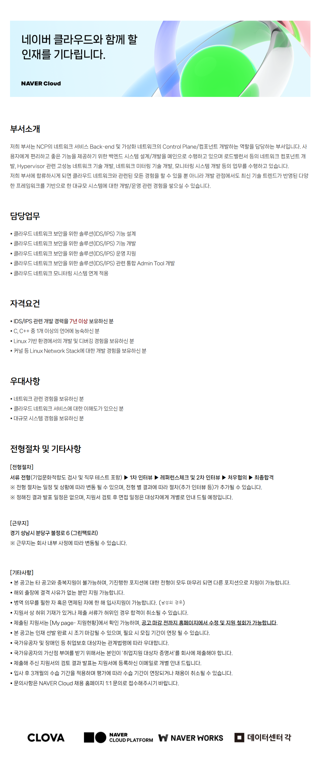 ÀúÈñ ºÎ¼´Â NCPÀÇ ³×Æ®¿öÅ© ¼ºñ½º Back-end ¹× °¡»óÈ ³×Æ®¿öÅ©ÀÇ Control Plane/ÄÄÆ÷³ÍÆ® °³¹ßÇÏ´Â ¿ªÇÒÀ» ´ã´çÇÏ´Â ºÎ¼ÀÔ´Ï´Ù. »ç¿ëÀÚ¿¡°Ô Æí¸®Çϰí ÁÁÀº ±â´ÉÀ» Á¦°øÇϱâ À§ÇÑ ¹é¿£µå ½Ã½ºÅÛ ¼³°è/°³¹ßÀ» ¸ÞÀÎÀ¸·Î ¼öÇàÇϰí ÀÖÀ¸¸ç ·Îµå¹ë·±¼ µîÀÇ ³×Æ®¿öÅ© ÄÄÆ÷³ÍÆ® °³¹ß, Hypervisor °ü·Ã °í¼º´É ³×Æ®¿öÅ© ±â¼ú °³¹ß, ³×Æ®¿öÅ© ¹ÌÅ͸µ ±â¼ú °³¹ß, ¸ð´ÏÅ͸µ ½Ã½ºÅÛ °³¹ß µîÀÇ ¾÷¹«¸¦ ¼öÇàÇϰí ÀÖ½À´Ï´Ù.