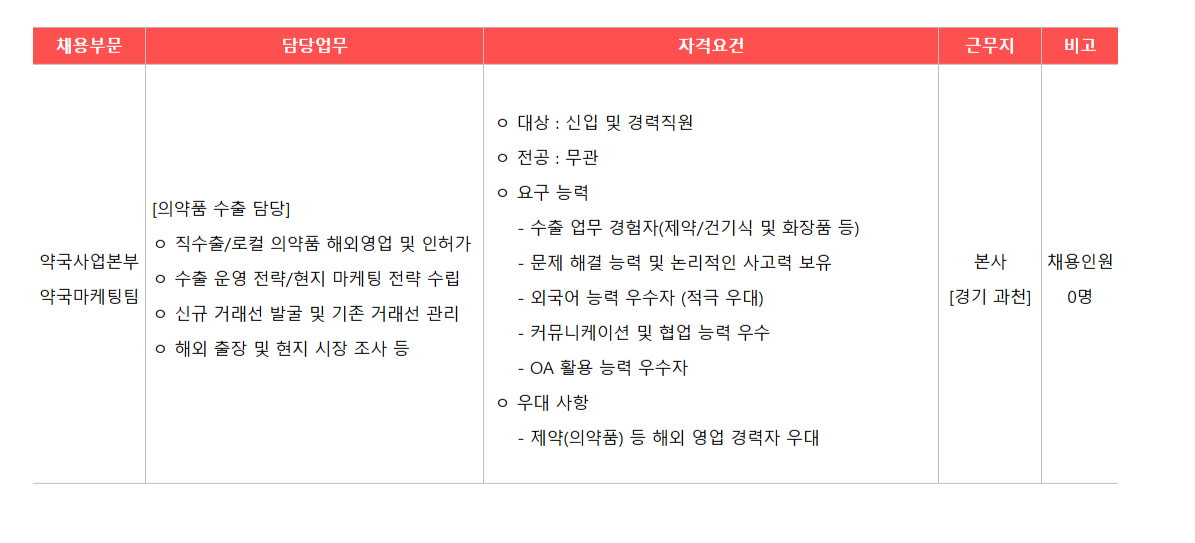 [±¤µ¿Á¦¾à] ¾à±¹¸¶ÄÉÆÃÆÀ ÀǾàǰ ¼öÃâ ´ã´ç ½ÅÀÔ ¹× °æ·ÂÁ÷¿ø ¸ðÁý