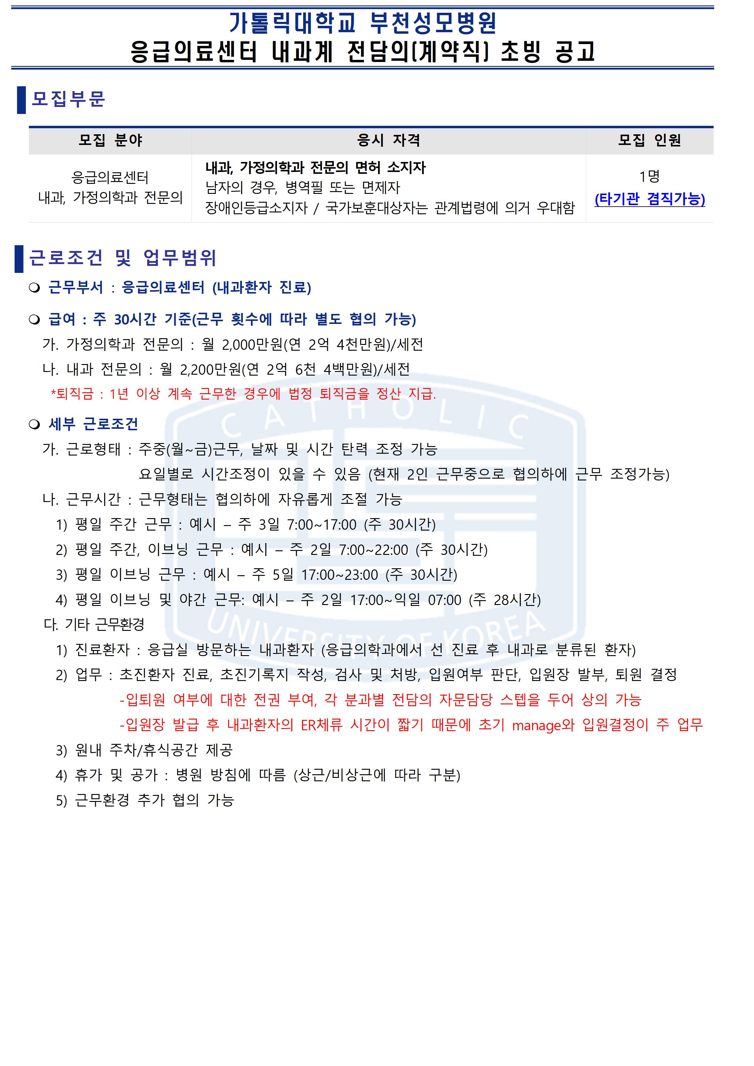 [ºÎõ¼º¸ð] ÀÀ±ÞÀÇ·á¼¾ÅÍ ³»°ú°è Àü¹®ÀÇ(°è¾àÁ÷) Ãʺù °ø°í