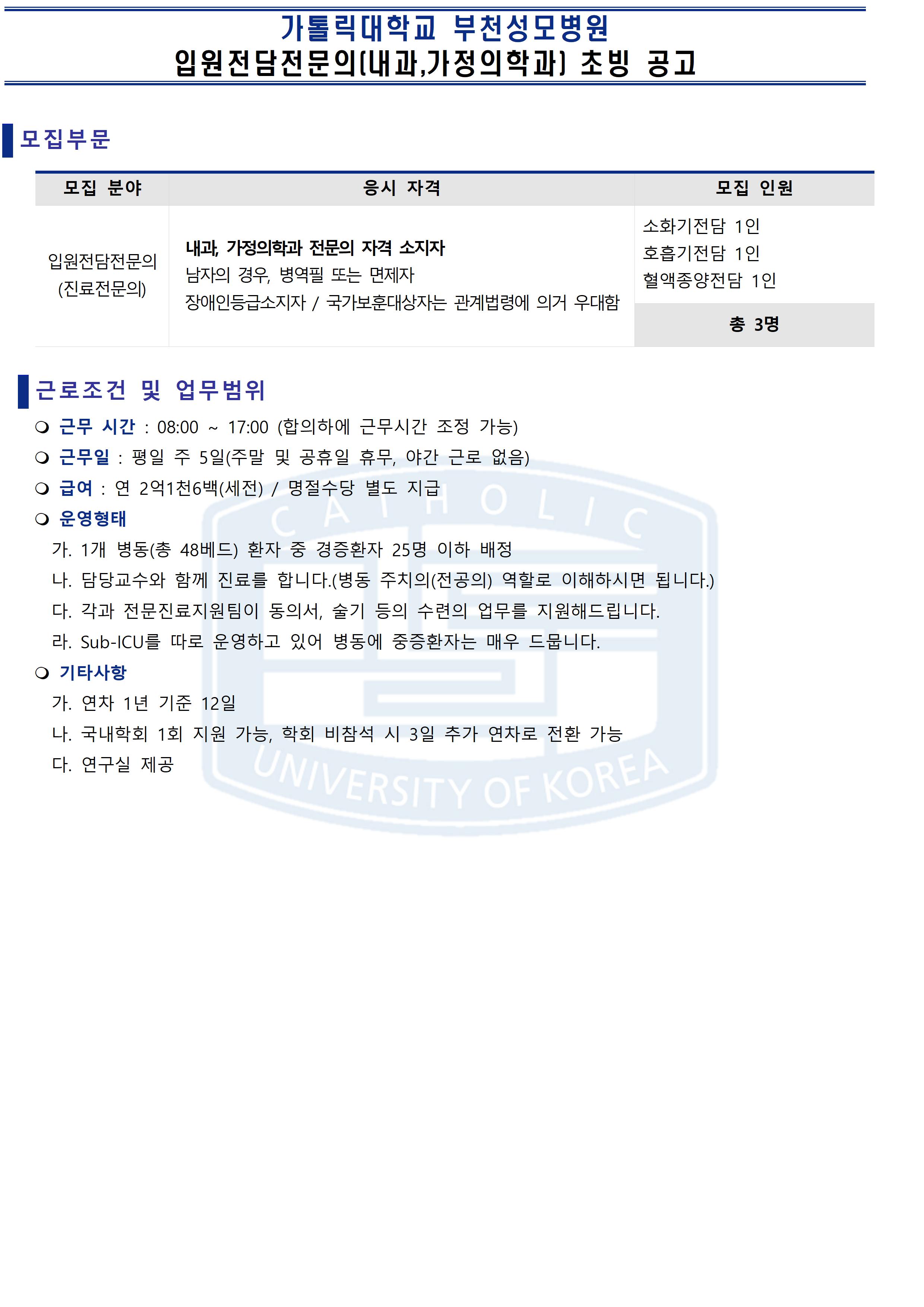 [ºÎõ¼º¸ð] ³»°ú ÀÔ¿øÀü´ã ¹× ÁßȯÀÚ½Ç Àü´ã Àü¹®ÀÇ(°è¾àÁ÷) Ãʺù°ø°í