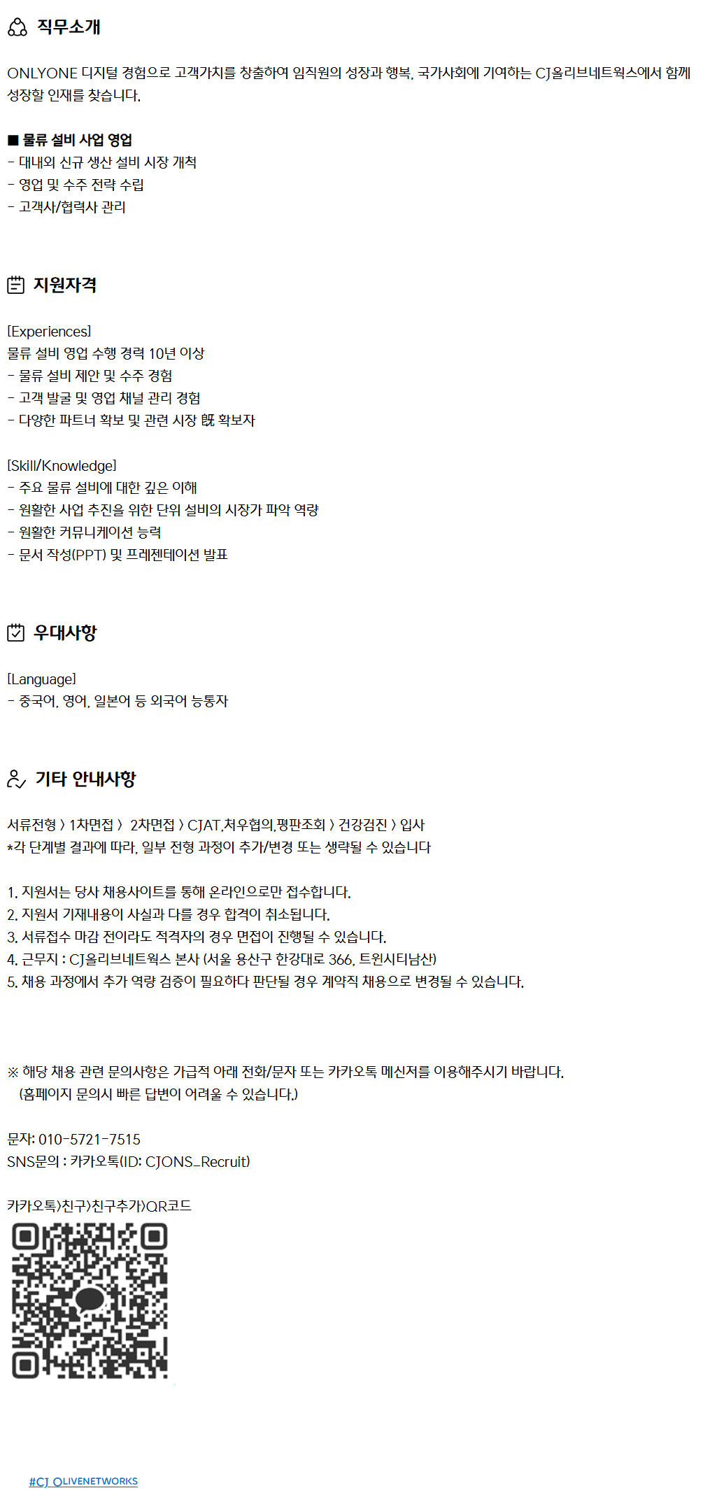 Á÷¹«¼Ò°³ ONLYONE µðÁöÅÐ °æÇèÀ¸·Î °í°´°¡Ä¡¸¦ âÃâÇÏ¿© ÀÓÁ÷¿øÀÇ ¼ºÀå°ú Çູ, ±¹°¡»çȸ¿¡ ±â¿©ÇÏ´Â CJ¿Ã¸®ºê³×Æ®¿÷½º¿¡¼ ÇÔ²² ¼ºÀåÇÒ ÀÎÀ縦 ã½À´Ï´Ù. ¡á ¹°·ù ¼³ºñ »ç¾÷ ¿µ¾÷ - ´ë³»¿Ü ½Å±Ô »ý»ê ¼³ºñ ½ÃÀå °³Ã´ - ¿µ¾÷ ¹× ¼öÁÖ Àü·« ¼ö¸³ - °í°´»ç/Çù·Â»ç °ü¸®