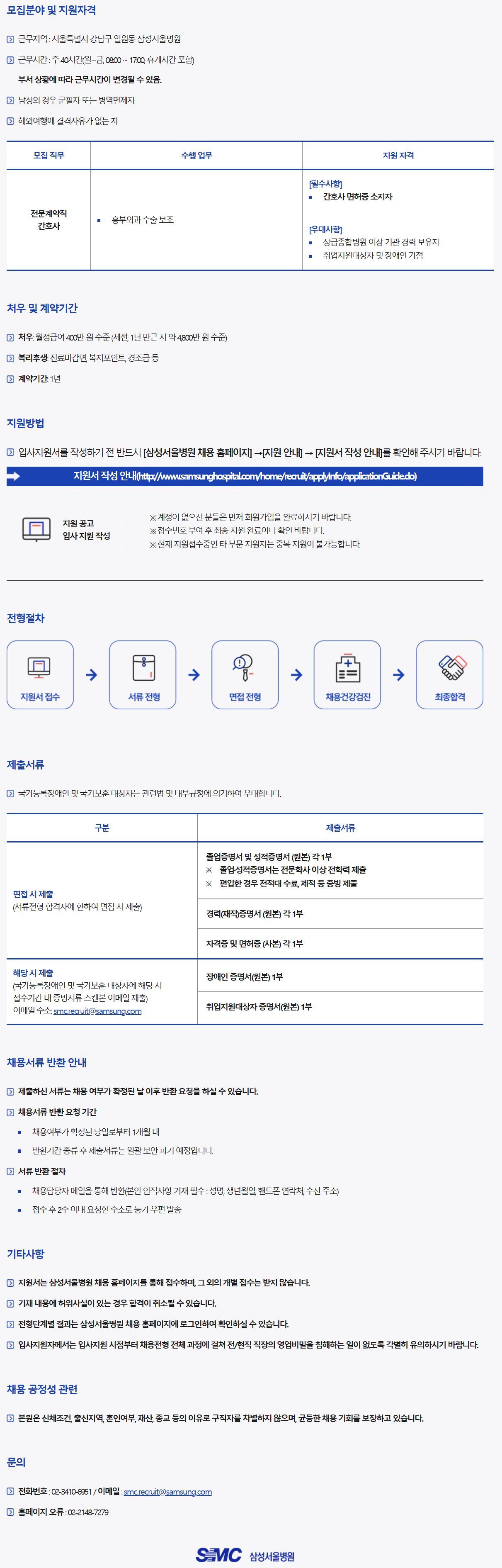 ¸ðÁý Á÷¹« ¼öÇà ¾÷¹« Áö¿ø ÀÚ°Ý Àü¹®°è¾àÁ÷ °£È£»ç ÈäºÎ¿Ü°ú ¼ö¼ú º¸Á¶ [Çʼö»çÇ×] °£È£»ç ¸éÇãÁõ ¼ÒÁöÀÚ [¿ì´ë»çÇ×] »ó±ÞÁ¾ÇÕº´¿ø ÀÌ»ó ±â°ü °æ·Â º¸À¯ÀÚ Ãë¾÷Áö¿ø´ë»óÀÚ ¹× Àå¾ÖÀÎ °¡Á¡