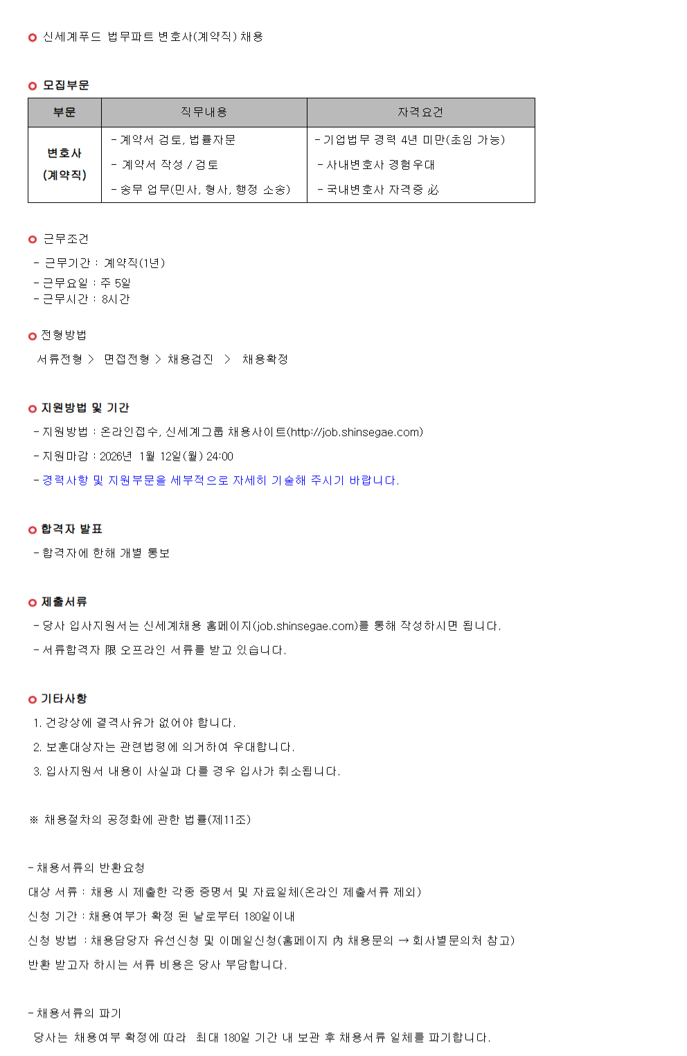 ºÎ¹® Á÷¹«³»¿ë ÀÚ°Ý¿ä°Ç º¯È£»ç (°è¾àÁ÷) - °è¾à¼ °ËÅä, ¹ý·üÀÚ¹® - °è¾à¼ ÀÛ¼º / °ËÅä - ¼Û¹« ¾÷¹«(¹Î»ç, Çü»ç, ÇàÁ¤ ¼Ò¼Û) - ±â¾÷¹ý¹« °æ·Â 4³â ¹Ì¸¸(ÃÊÀÓ °¡´É) - »ç³»º¯È£»ç °æÇè¿ì´ë - ±¹³»º¯È£»ç ÀÚ°ÝÁõ ù±