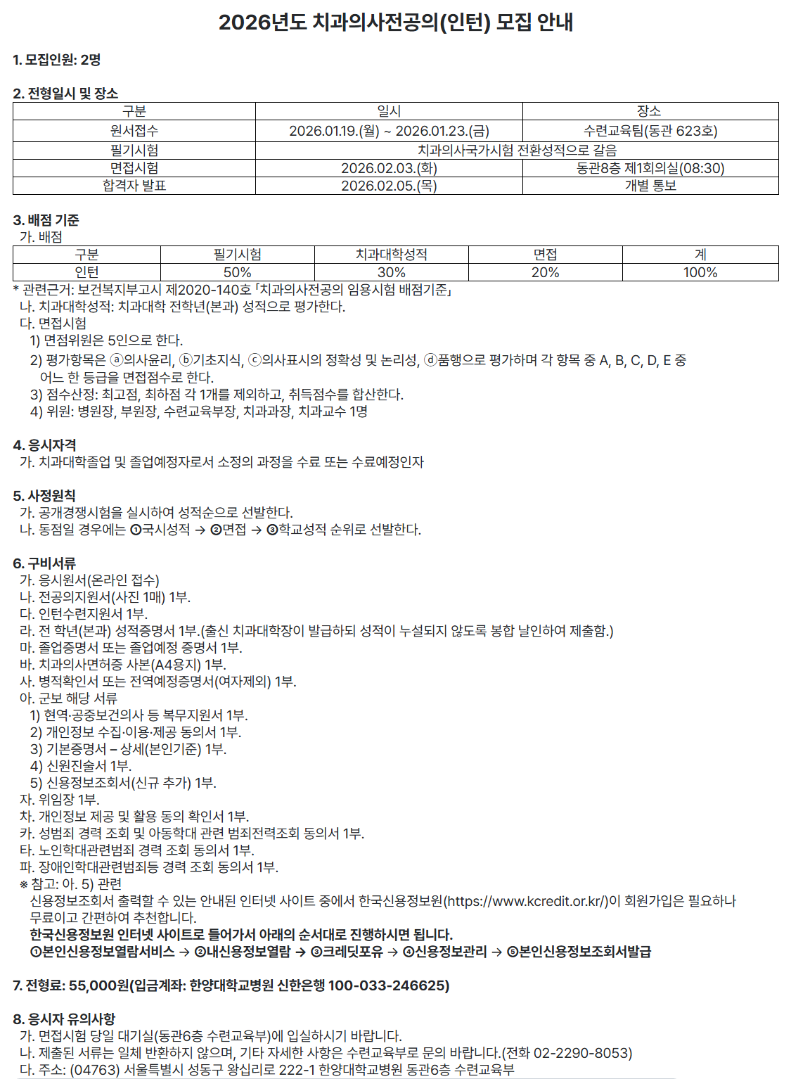 2026³âµµ Ä¡°úÀÇ»çÀü°øÀÇ(ÀÎÅÏ) ¸ðÁý ¾È³»