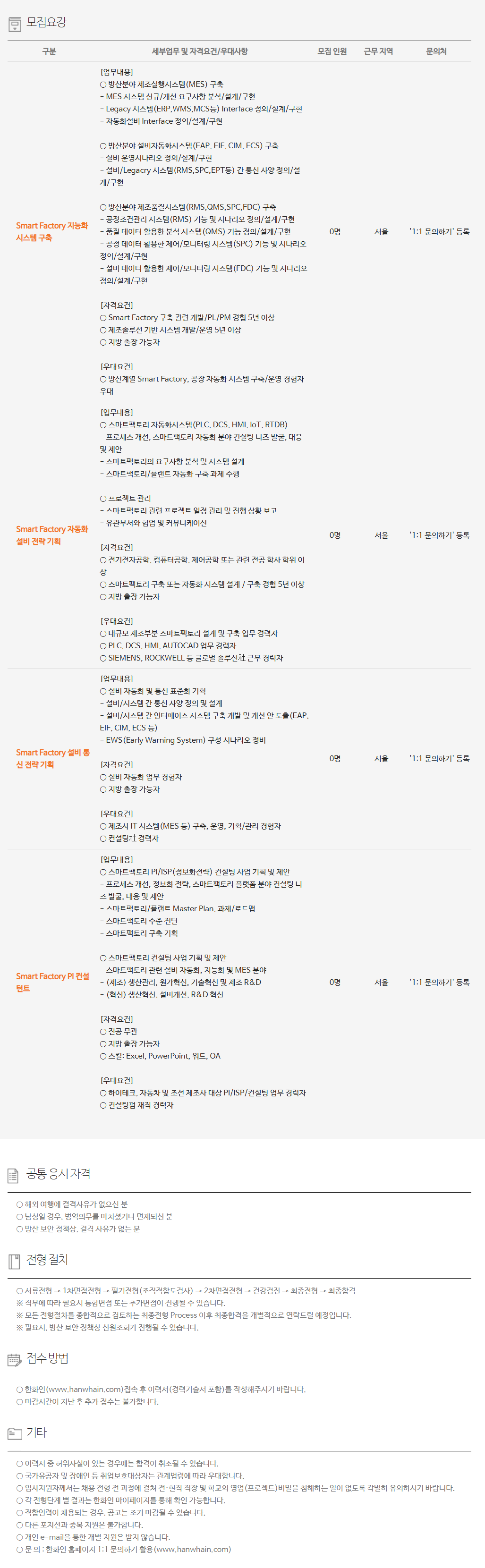 ¡Û ¹æ»ê°è¿ Smart Factory, °øÀå ÀÚµ¿È ½Ã½ºÅÛ ±¸Ãà/¿î¿µ °æÇèÀÚ ¿ì´ë 0¸í ¼¿ï '1:1 ¹®ÀÇÇϱâ' µî·Ï