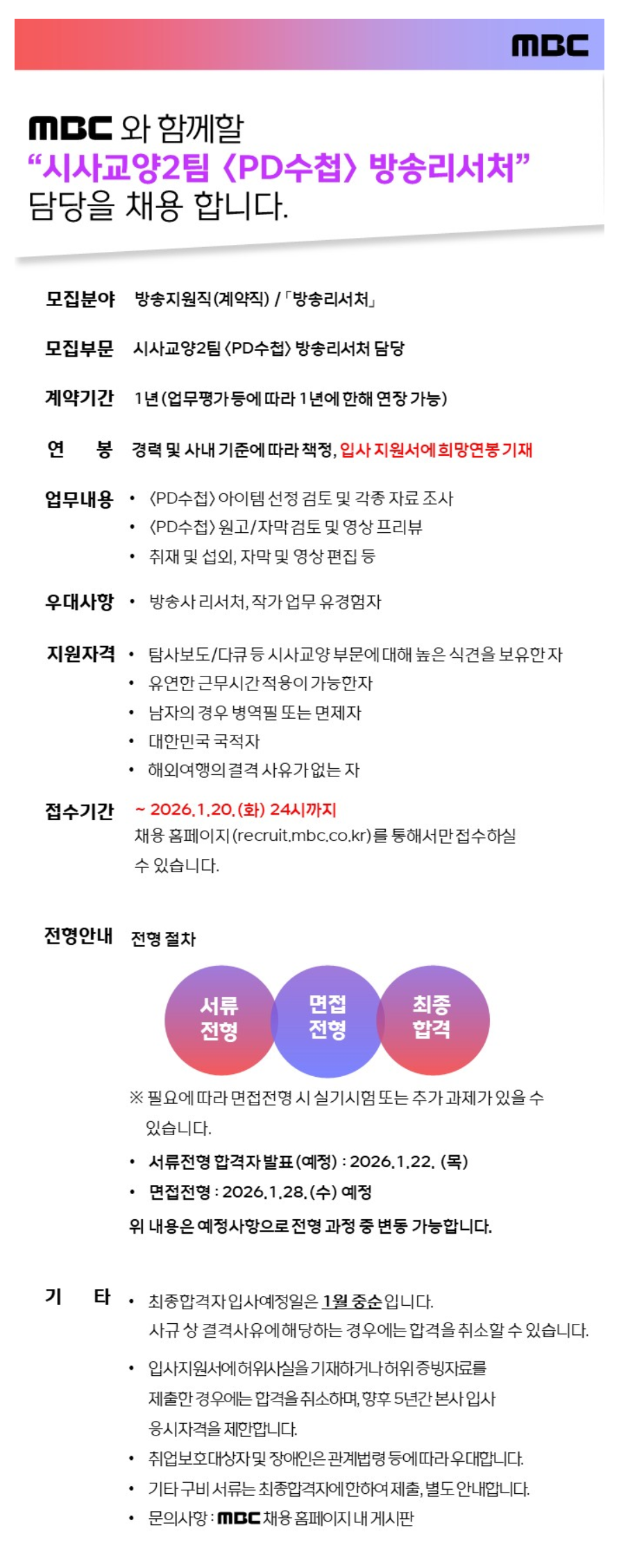 MBC ½Ã»ç±³¾ç2ÆÀ ¹æ¼ÛÁö¿øÁ÷ ä¿ë °ø°í