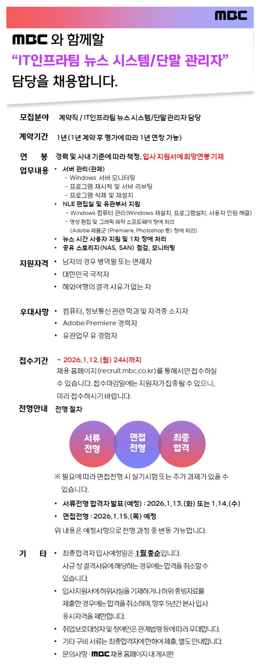 MBC ITÀÎÇÁ¶óÆÀ ´º½º ½Ã½ºÅÛ/´Ü¸» °ü¸®ÀÚ ´ã´ç ¸ðÁý
