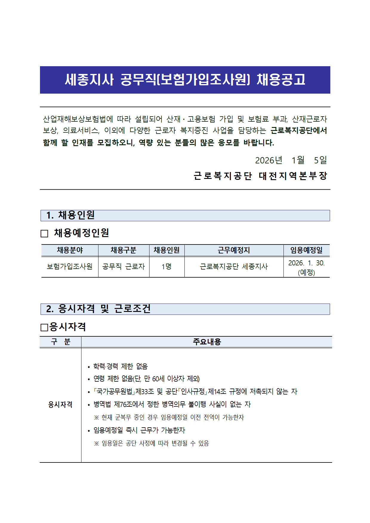 [¼¼Á¾Áö»ç] °ø¹«Á÷(º¸Çè°¡ÀÔÁ¶»ç¿ø) ä¿ë °ø°í