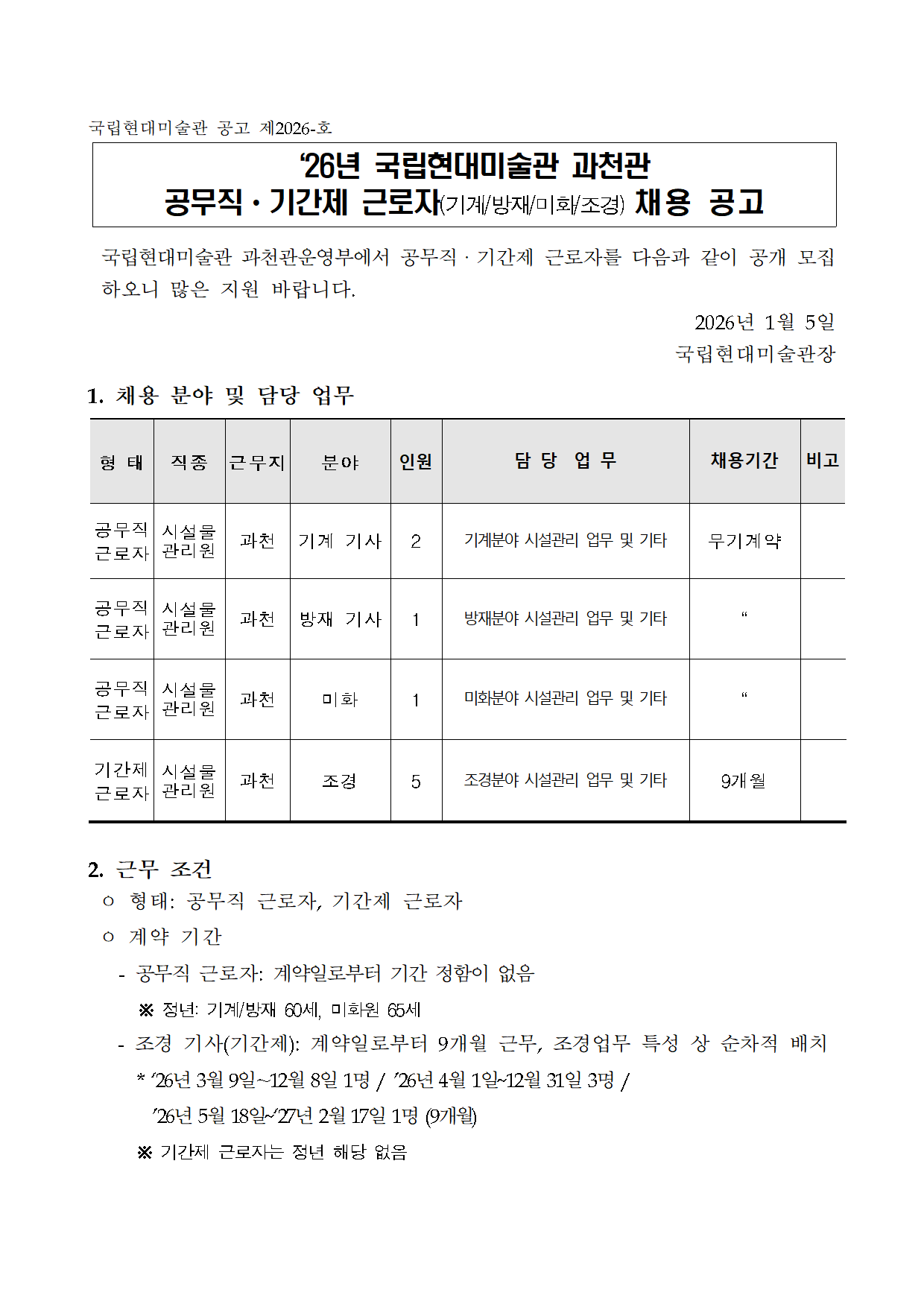 ±¹¸³Çö´ë¹Ì¼ú°ü °ø¹«Á÷¤ý±â°£Á¦ ±Ù·ÎÀÚ(½Ã¼³°ü¸®) ä¿ë °ø°í