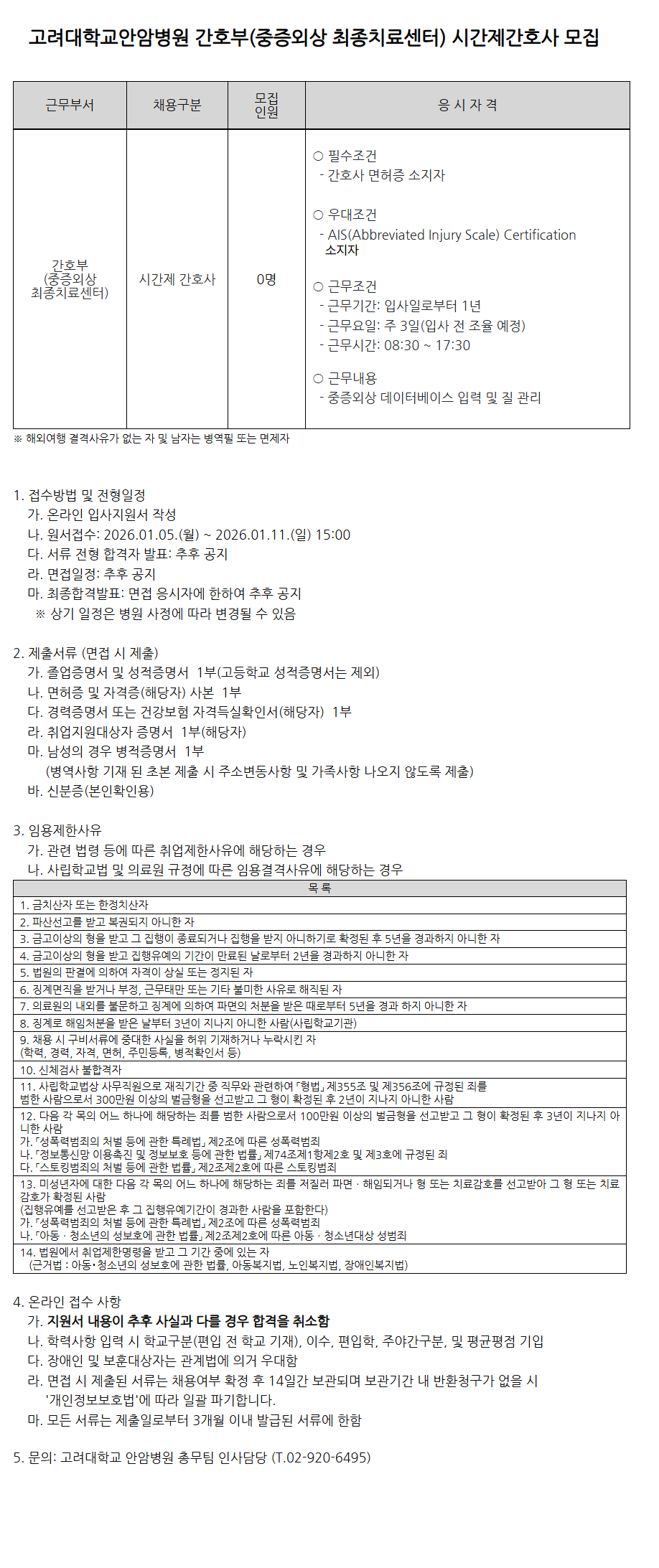 5. ¹®ÀÇ: °í·Á´ëÇб³ ¾È¾Ïº´¿ø Ãѹ«ÆÀ Àλç´ã´ç (T.***-****-****)