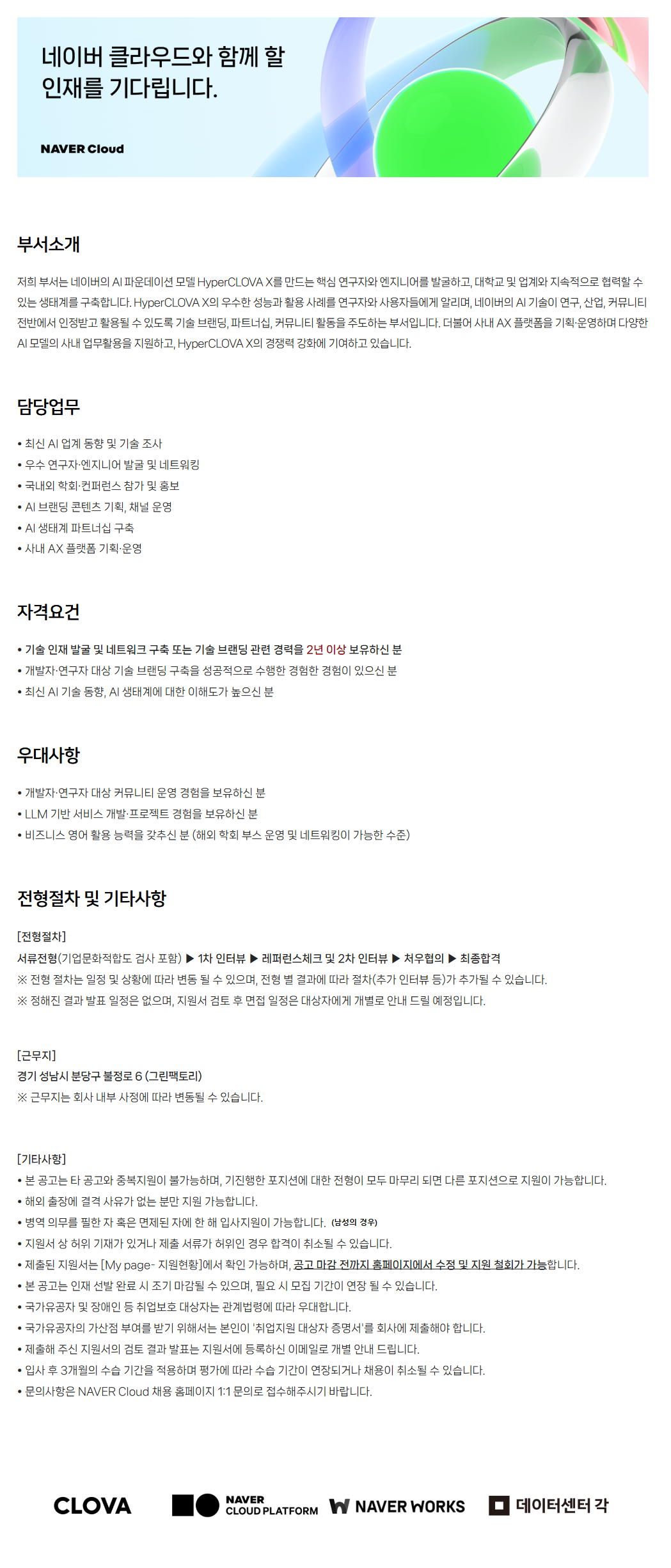 ÀúÈñ ºÎ¼´Â ³×À̹öÀÇ AI ÆÄ¿îµ¥ÀÌ¼Ç ¸ðµ¨ HyperCLOVA X¸¦ ¸¸µå´Â ÇÙ½É ¿¬±¸ÀÚ¿Í ¿£Áö´Ï¾î¸¦ ¹ß±¼Çϰí, ´ëÇб³ ¹× ¾÷°è¿Í Áö¼ÓÀûÀ¸·Î Çù·ÂÇÒ ¼ö ÀÖ´Â »ýŰ踦 ±¸ÃàÇÕ´Ï´Ù. HyperCLOVA XÀÇ ¿ì¼öÇÑ ¼º´É°ú Ȱ¿ë »ç·Ê¸¦ ¿¬±¸ÀÚ¿Í »ç¿ëÀڵ鿡°Ô ¾Ë¸®¸ç, ³×À̹öÀÇ AI ±â¼úÀÌ ¿¬±¸, »ê¾÷, Ä¿¹Â´ÏƼ Àü¹Ý¿¡¼ ÀÎÁ¤¹Þ°í Ȱ¿ëµÉ ¼ö ÀÖµµ·Ï ±â¼ú ºê·£µù, ÆÄÆ®³Ê½Ê, Ä¿¹Â´ÏƼ Ȱµ¿À» ÁÖµµÇÏ´Â ºÎ¼ÀÔ´Ï´Ù. ´õºÒ¾î »ç³» AX Ç÷§ÆûÀ» ±âȹ¡¤¿î¿µÇÏ¸ç ´Ù¾çÇÑ AI ¸ðµ¨ÀÇ »ç³» ¾÷¹«È°¿ëÀ» Áö¿øÇϰí, HyperCLOVA XÀÇ °æÀï·Â °È¿¡ ±â¿©Çϰí ÀÖ½À´Ï´Ù.