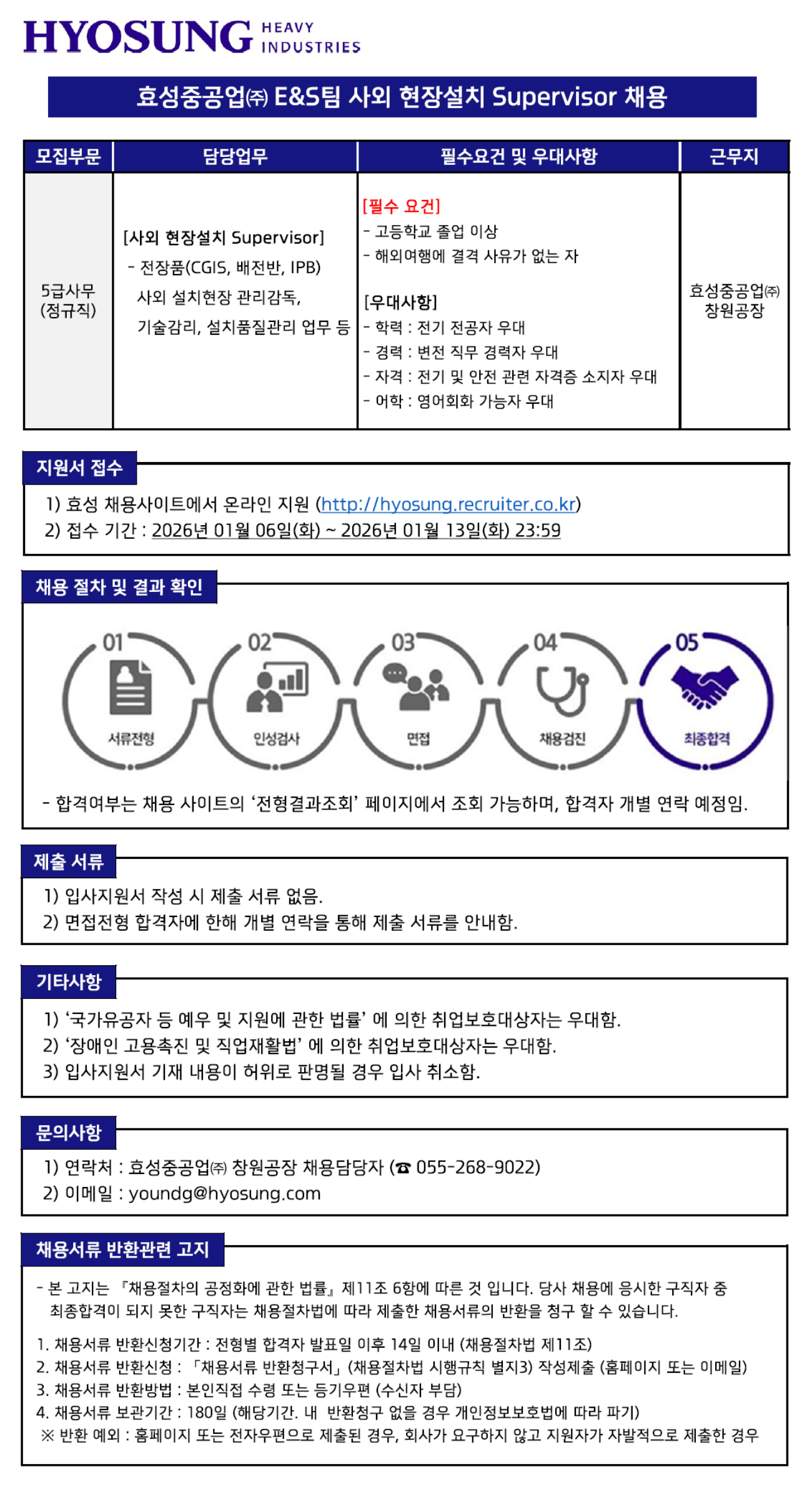 È¿¼ºÁß°ø¾÷(ÁÖ) â¿ø°øÀå »ç¿Ü ÇöÀ弳ġ Supervisor ä¿ë