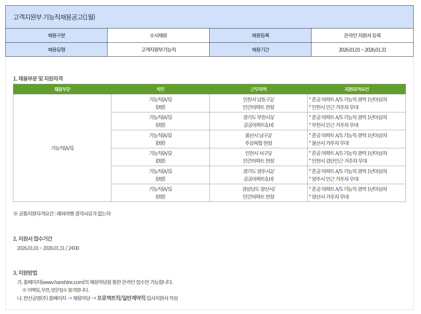 °¡. ȨÆäÀÌÁö(www.hanshinc.com)ÀÇ Ã¤¿ë¸¶´çÀ» ÅëÇÑ ¿Â¶óÀÎ Á¢¼ö¸¸ °¡´ÉÇÕ´Ï´Ù.