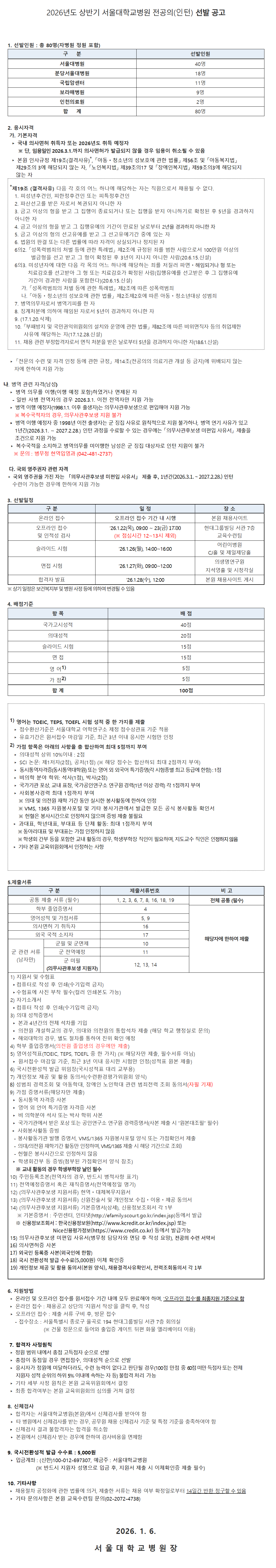 2026³âµµ »ó¹Ý±â ¼¿ï´ëÇб³º´¿ø Àü°øÀÇ(ÀÎÅÏ) ¼±¹ß °ø°í