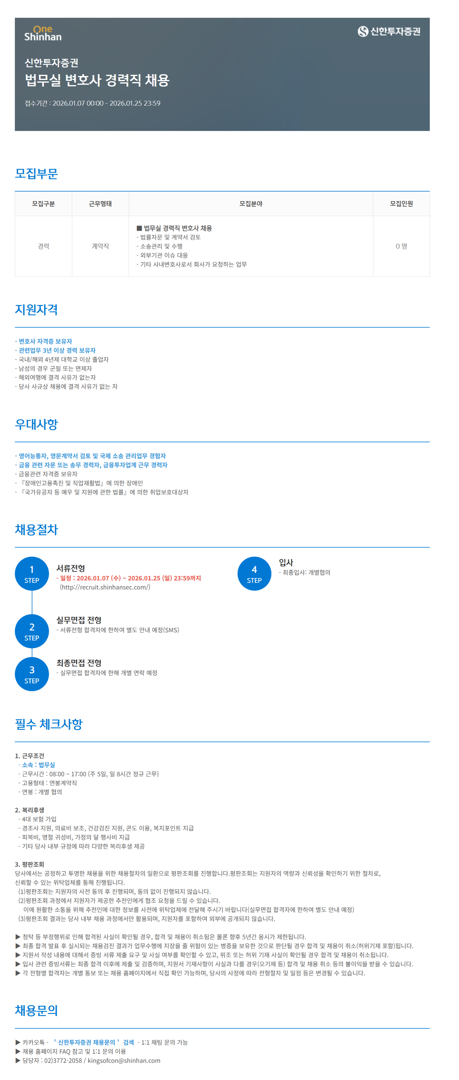 ¸ðÁý±¸ºÐ ±Ù¹«ÇüÅ ¸ðÁýºÐ¾ß ¸ðÁýÀοø °æ·Â °è¾àÁ÷ ¡á ¹ý¹«½Ç °æ·ÂÁ÷ º¯È£»ç ä¿ë - ¹ý·üÀÚ¹® ¹× °è¾à¼ °ËÅä - ¼Ò¼Û°ü¸® ¹× ¼öÇà - ¿ÜºÎ±â°ü À̽´ ´ëÀÀ - ±âŸ »ç³»º¯È£»ç·Î¼ ȸ»ç°¡ ¿äûÇÏ´Â ¾÷¹« 0 ¸í