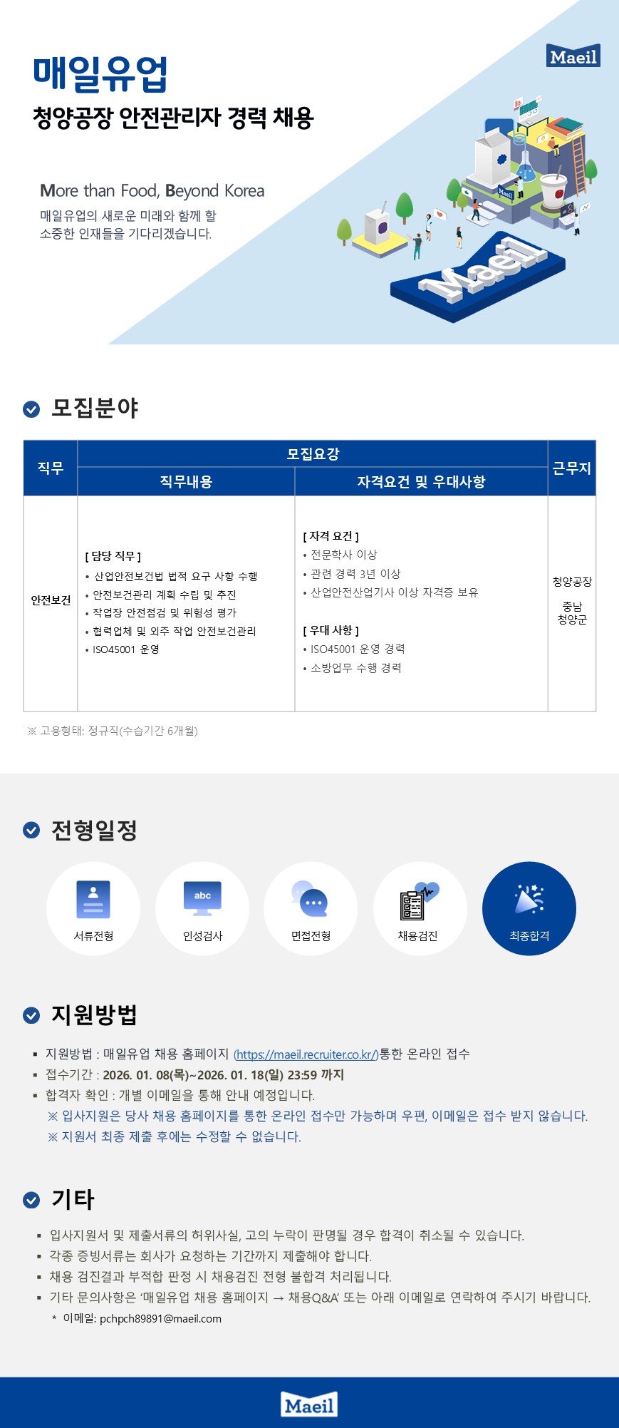 ¸ÅÀÏÀ¯¾÷ û¾ç°øÀå ¾ÈÀü°ü¸®ÀÚ(°æ·Â 3³âÀÌ»ó)