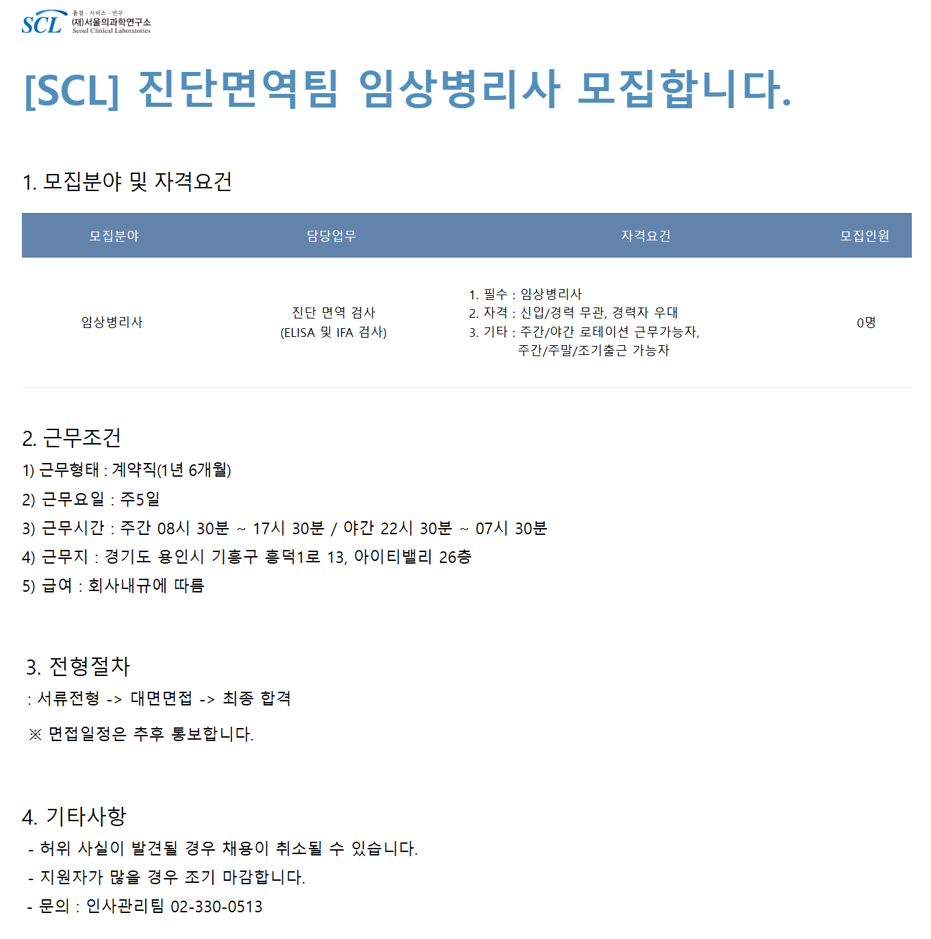 [SCL] Áø´Ü¸é¿ªÆÀ ÀÓ»óº´¸®»ç ¸ðÁýÇÕ´Ï´Ù.