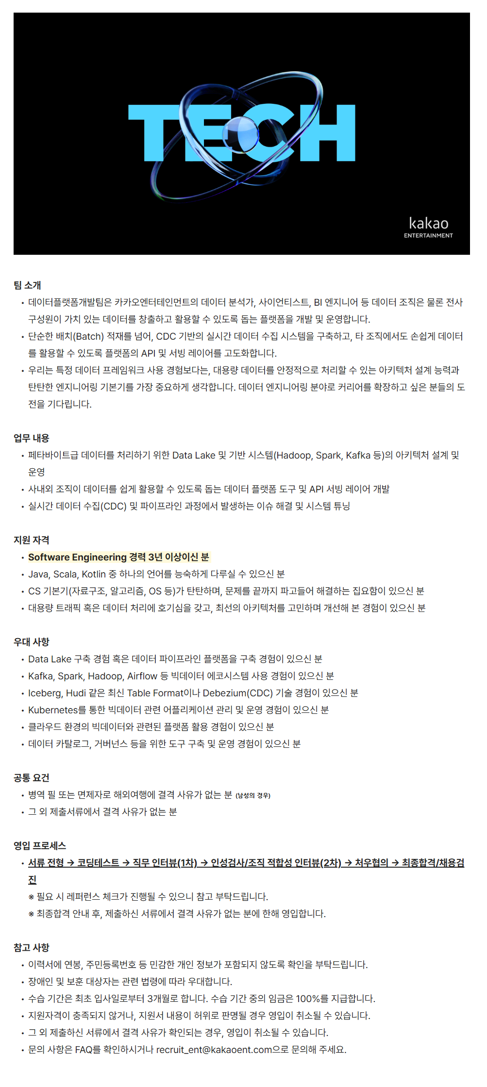 Kafka, Spark, Hadoop, Airflow µî ºòµ¥ÀÌÅÍ ¿¡ÄڽýºÅÛ »ç¿ë °æÇèÀÌ ÀÖÀ¸½Å ºÐ