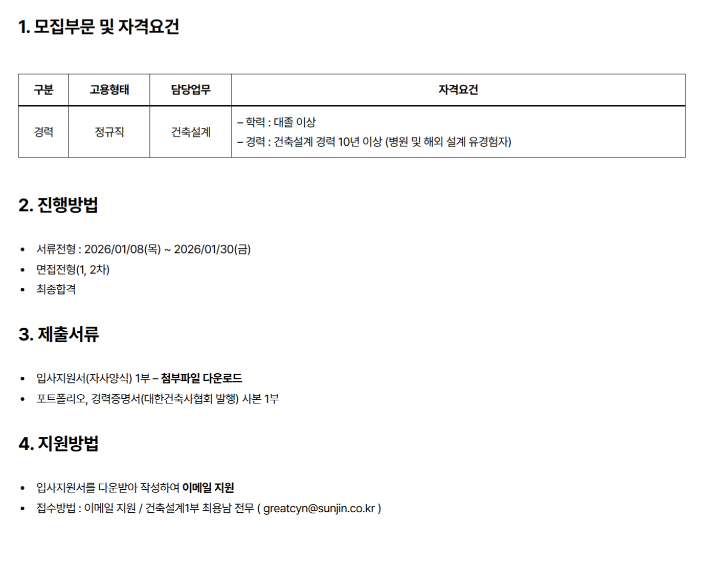 ±¸ºÐ °í¿ëÇüÅ ´ã´ç¾÷¹« ÀÚ°Ý¿ä°Ç °æ·Â Á¤±ÔÁ÷ °ÇÃ༳°è – Çз : ´ëÁ¹ ÀÌ»ó – °æ·Â : °ÇÃ༳°è °æ·Â 10³â ÀÌ»ó (º´¿ø ¹× ÇØ¿Ü ¼³°è À¯°æÇèÀÚ)